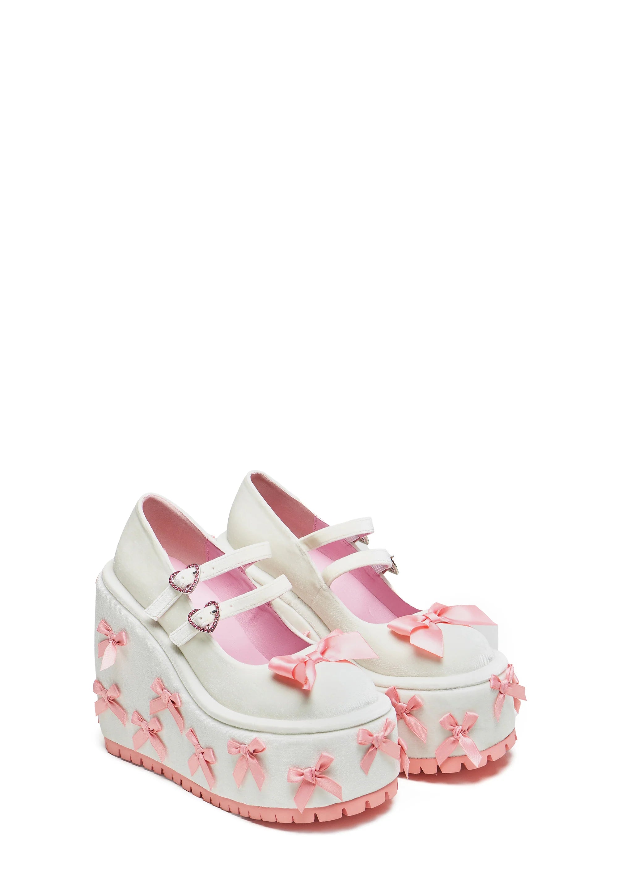A Courtship of Bows Platform Mary Janes - Cream