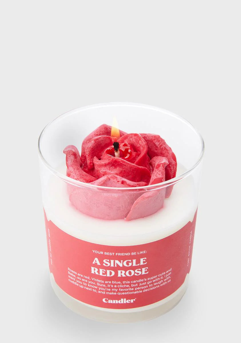 A Single Red Rose Candle
