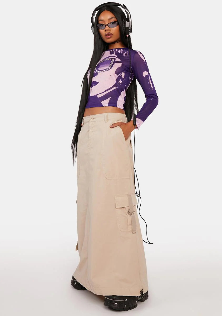 Aria Beige Cargo Maxi Skirt