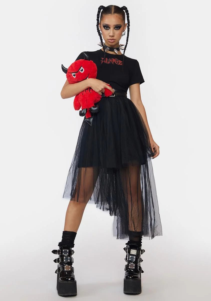 Asymmetric Mesh Hem Midi Dress