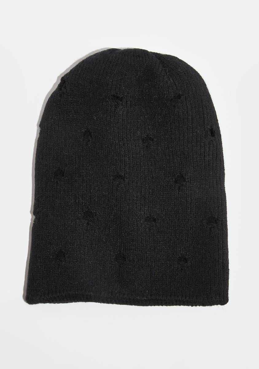 Atmosphere Black Beanie With Holes