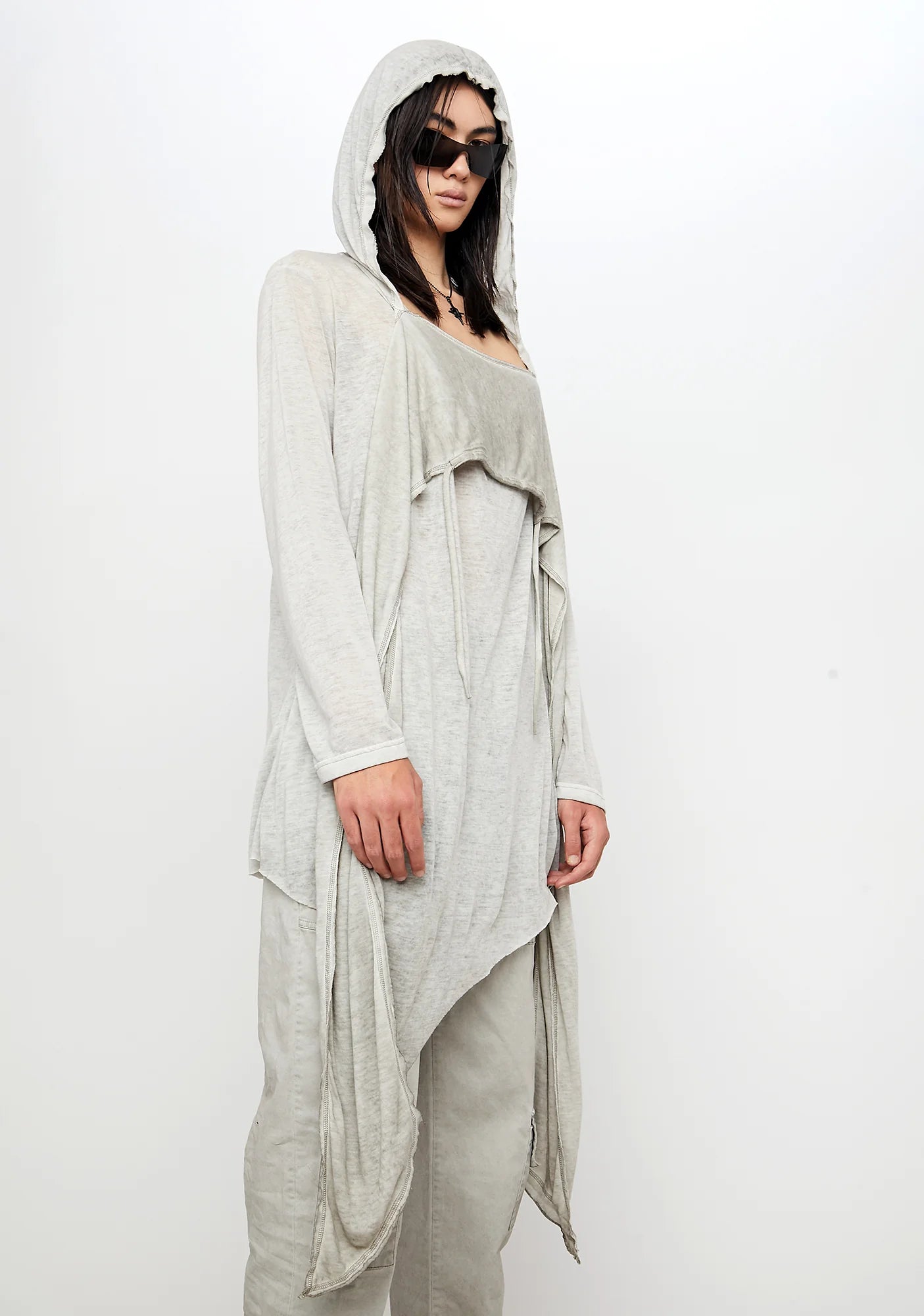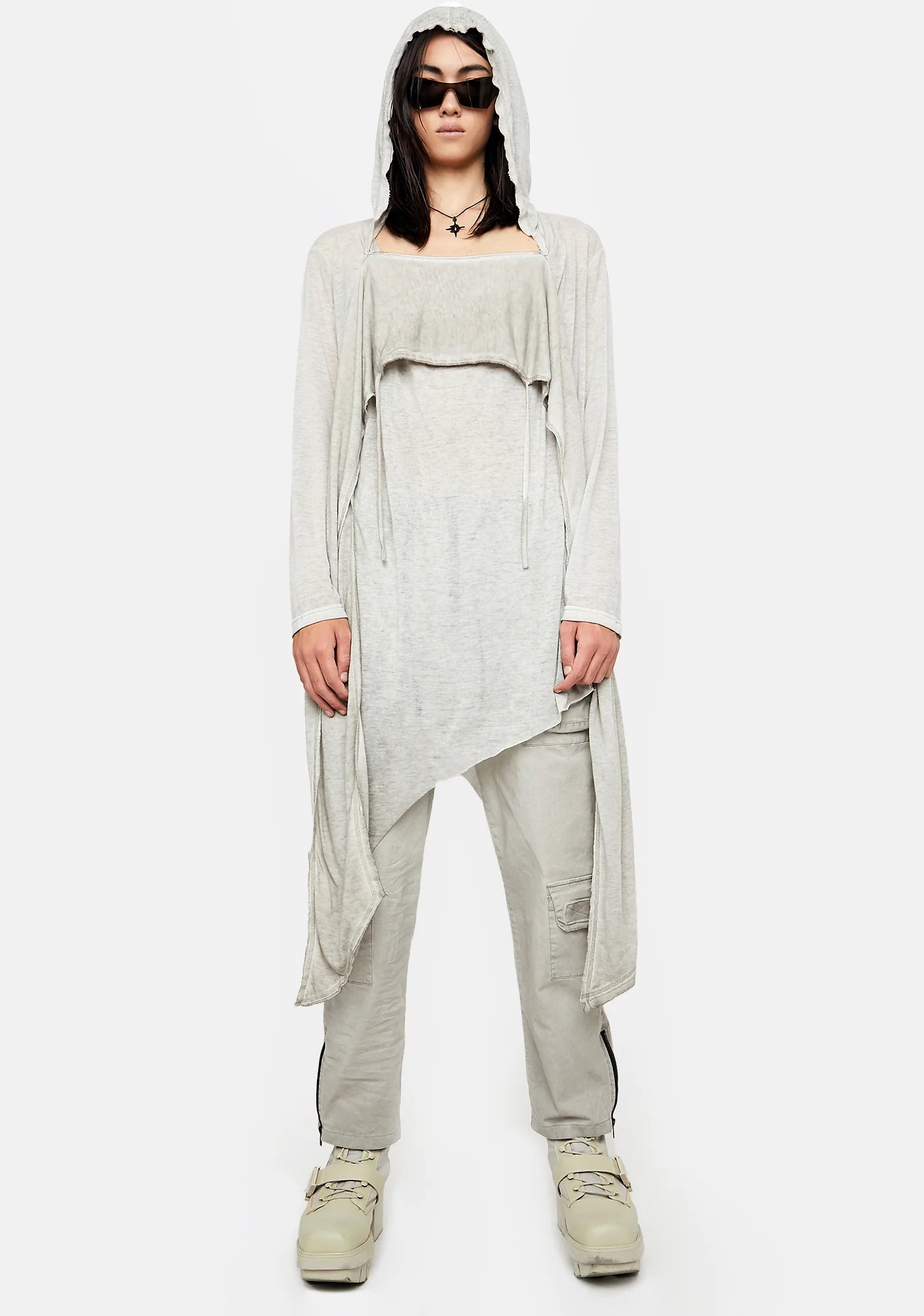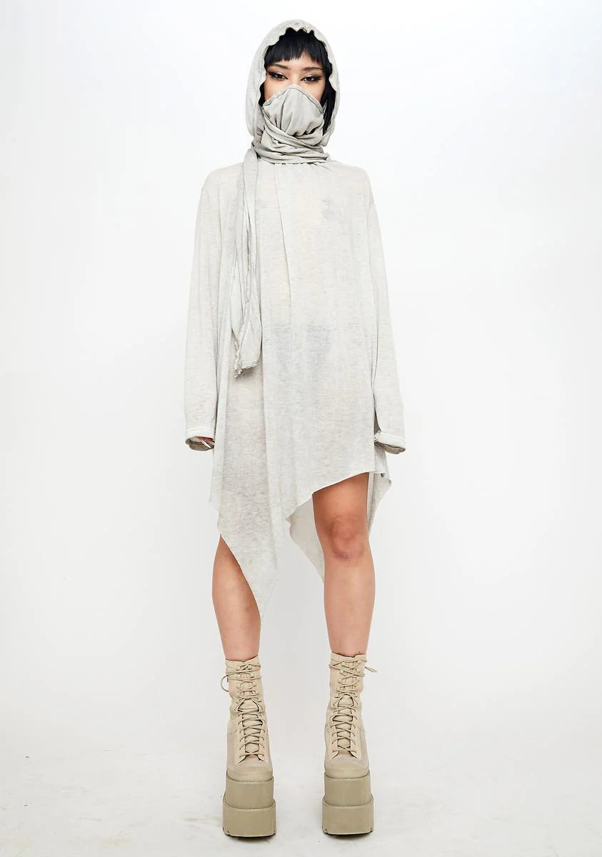 Atmosphere Unisex Hooded Asymmetrical Top With Scarf