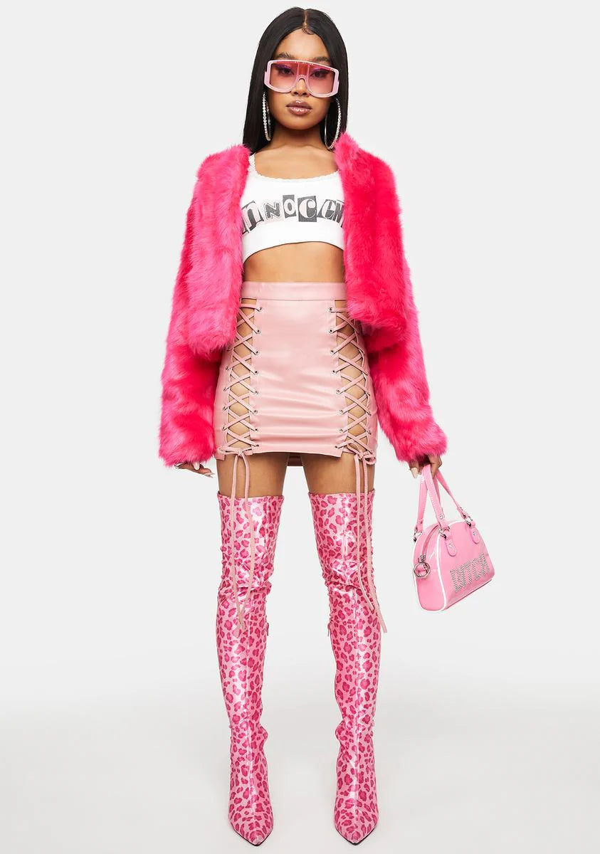 Baesic Satisfied Smirk Vegan Leather Lace Up Skirt