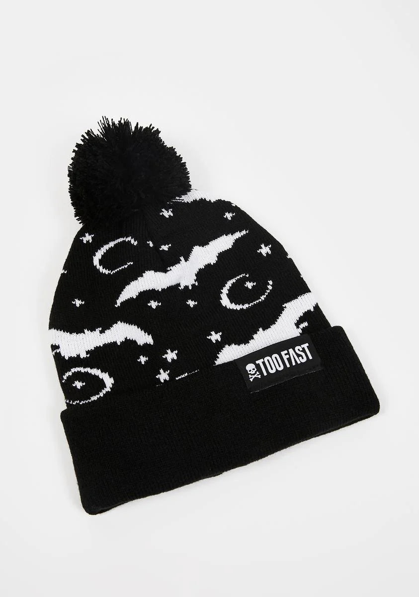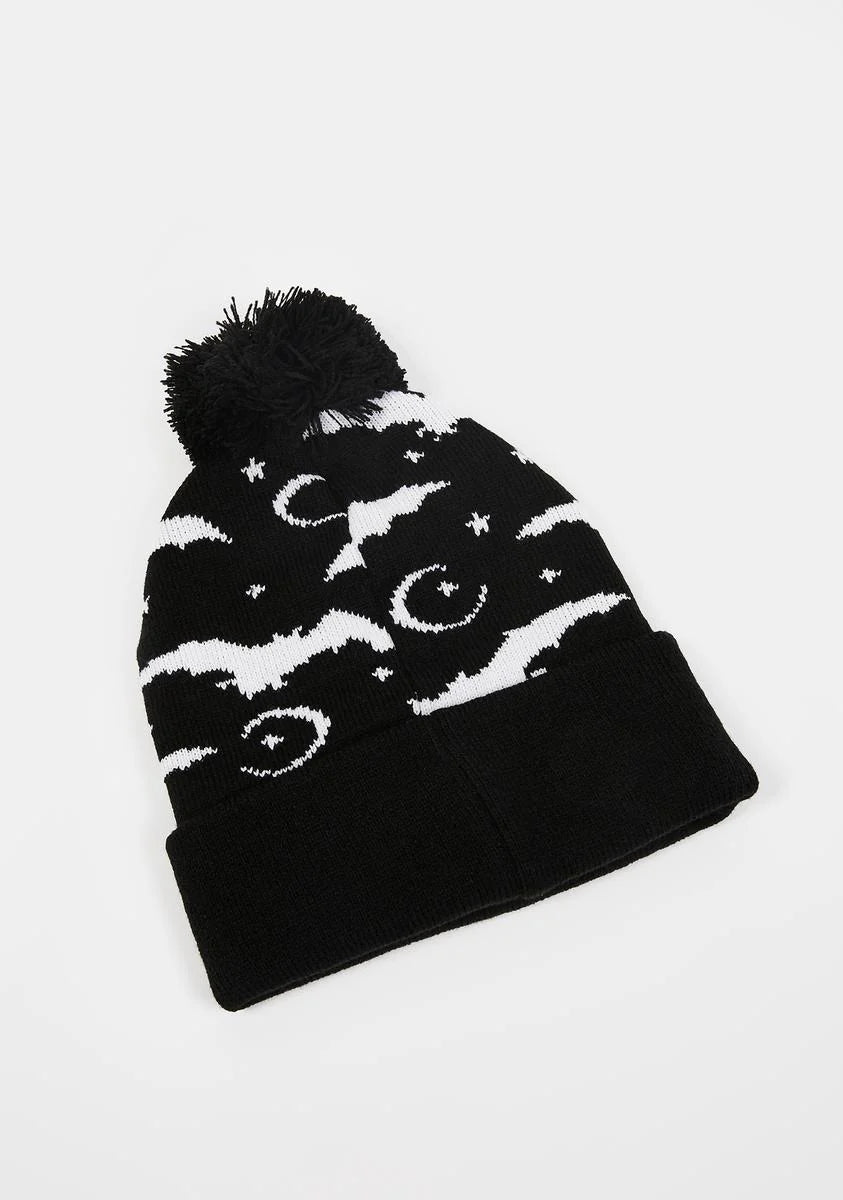 Bat And Moon Knit Beanie