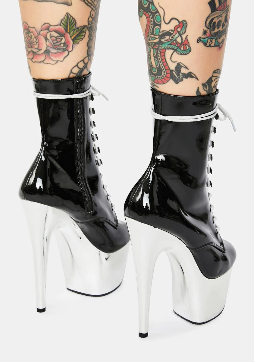 Black And Chrome Adore Lace Up Heels