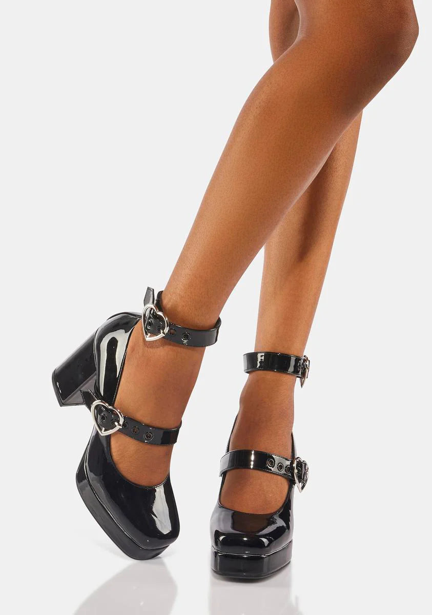 Black Chrome Heart Heels