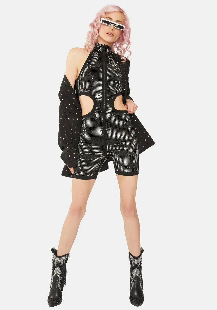 Black Compound Rhinestone Romper