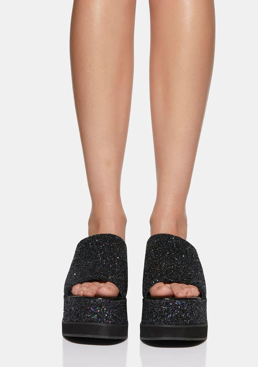 Black Glitter Bubble Platform Mules