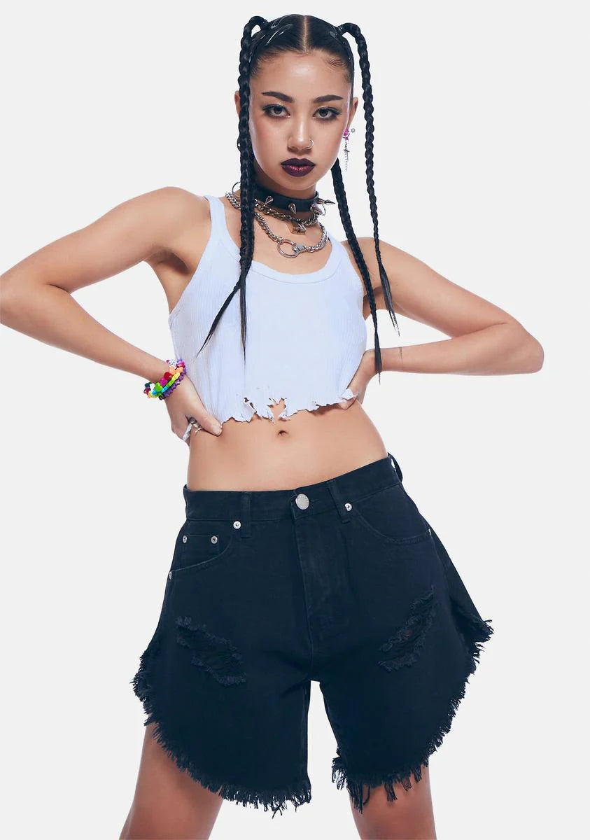 Black High Rise Distressed Denim Shorts