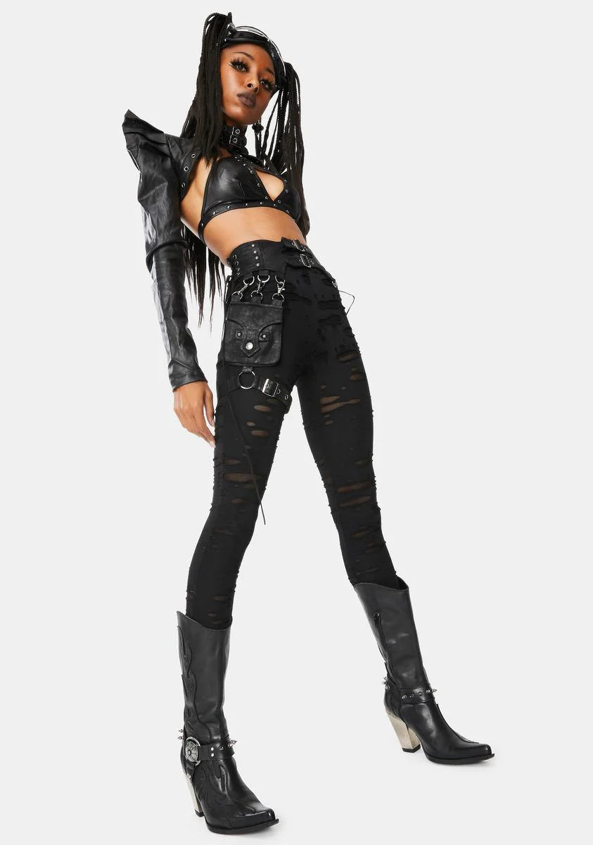 Black Steampunk Detachable Waist Bag Leggings