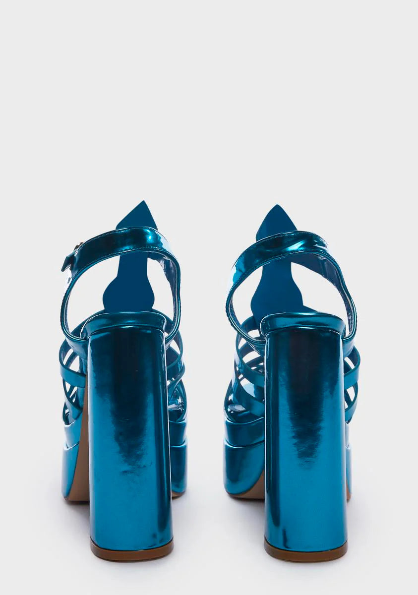 Blue Metallic Tacy Platform Sandals