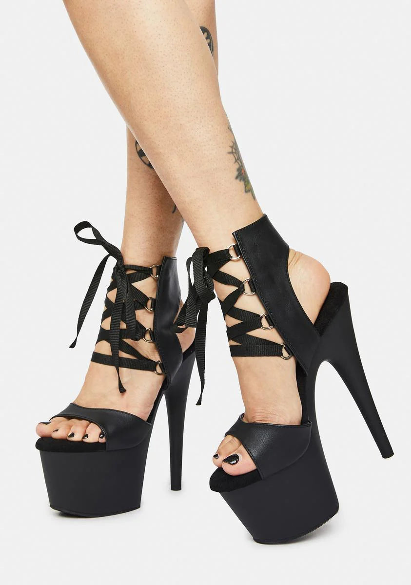 Bow Down Lace Up Platform Heels
