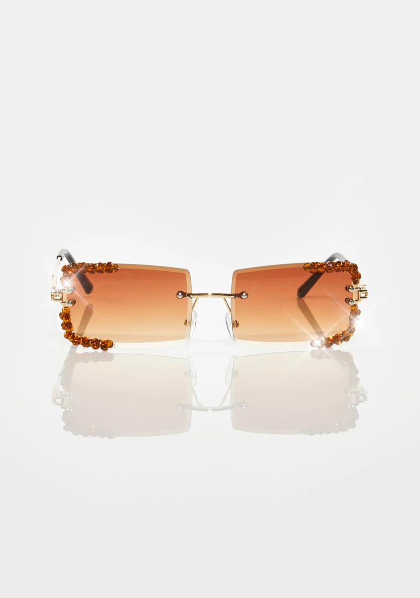 Brown Rimless Revival Rhinestone Sunglasses
