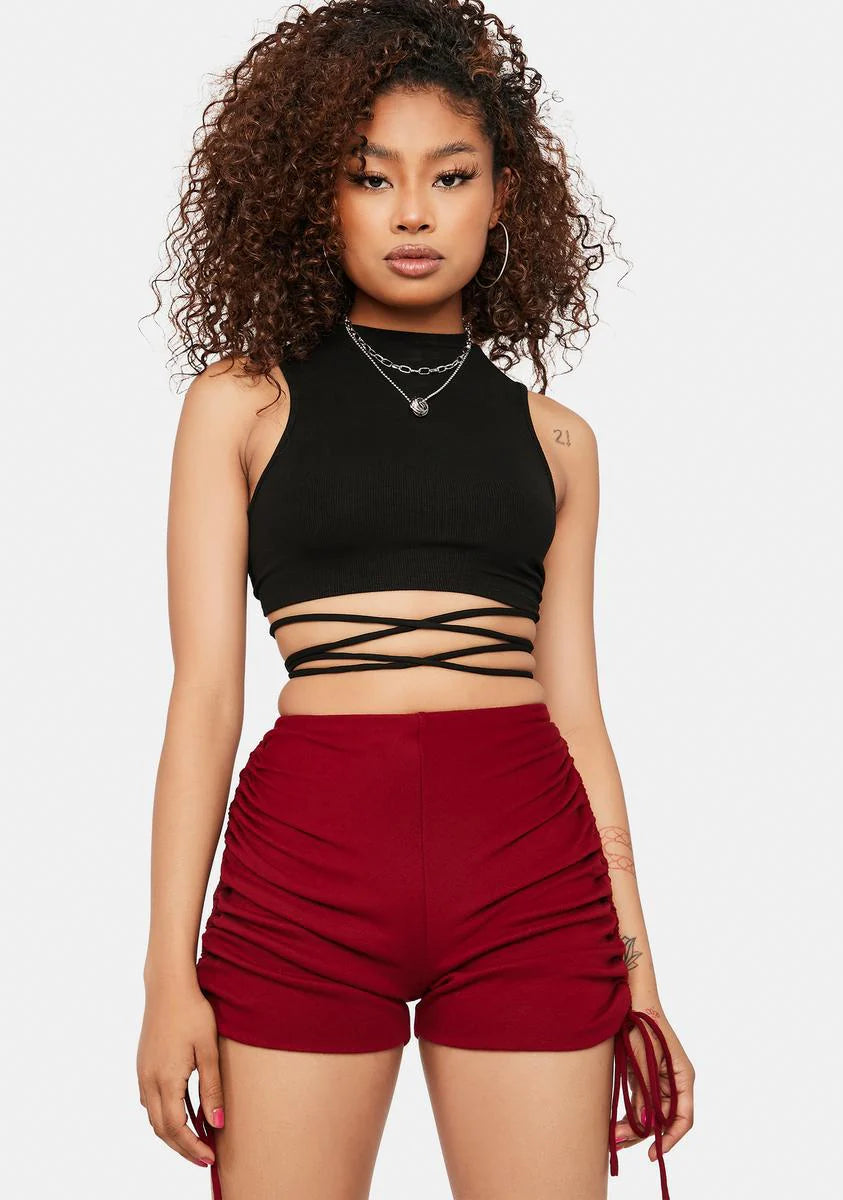 Burgundy About That Life Ruched Shorts