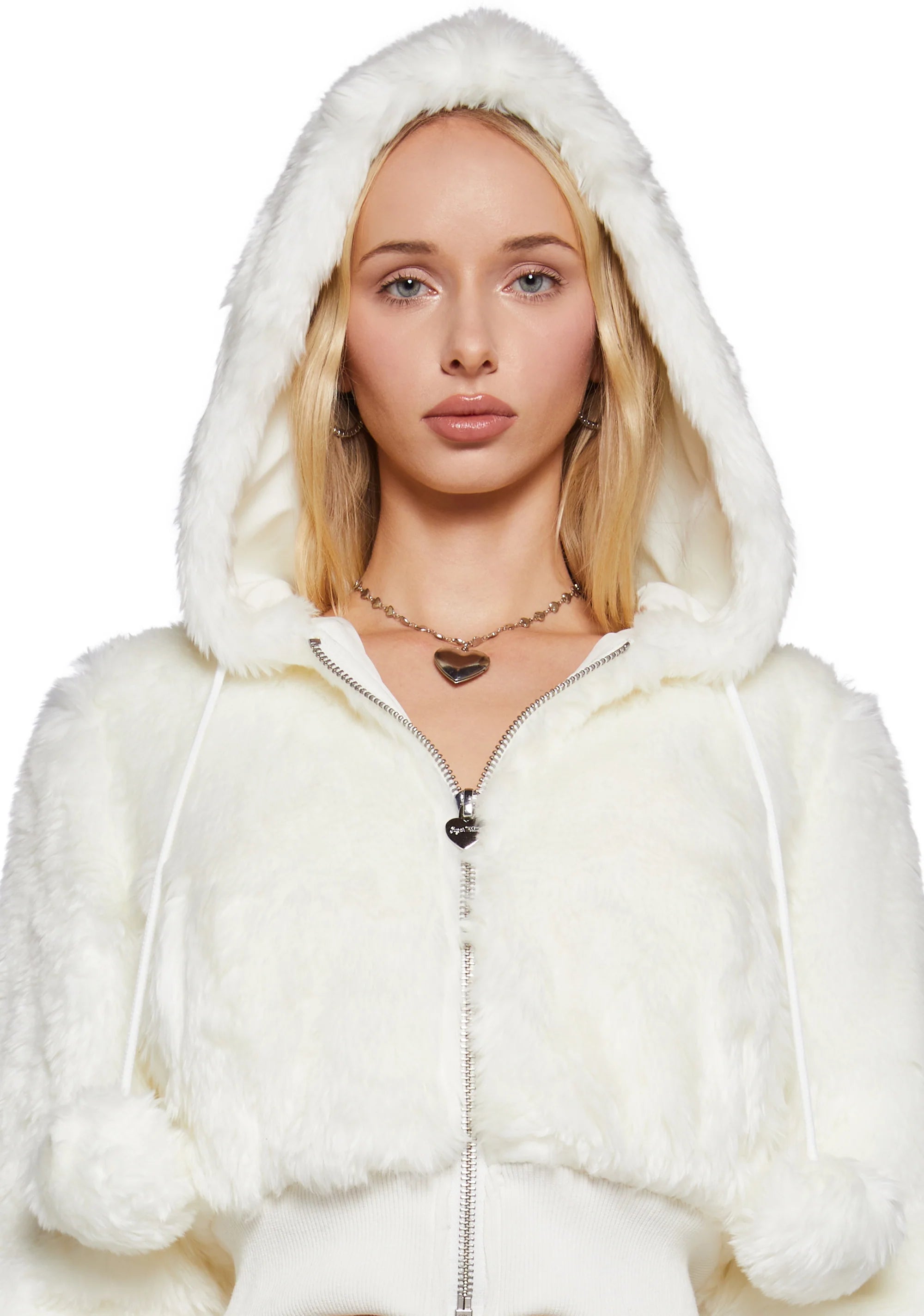 Candy Blossom Faux Fur Hoodie - Ivory