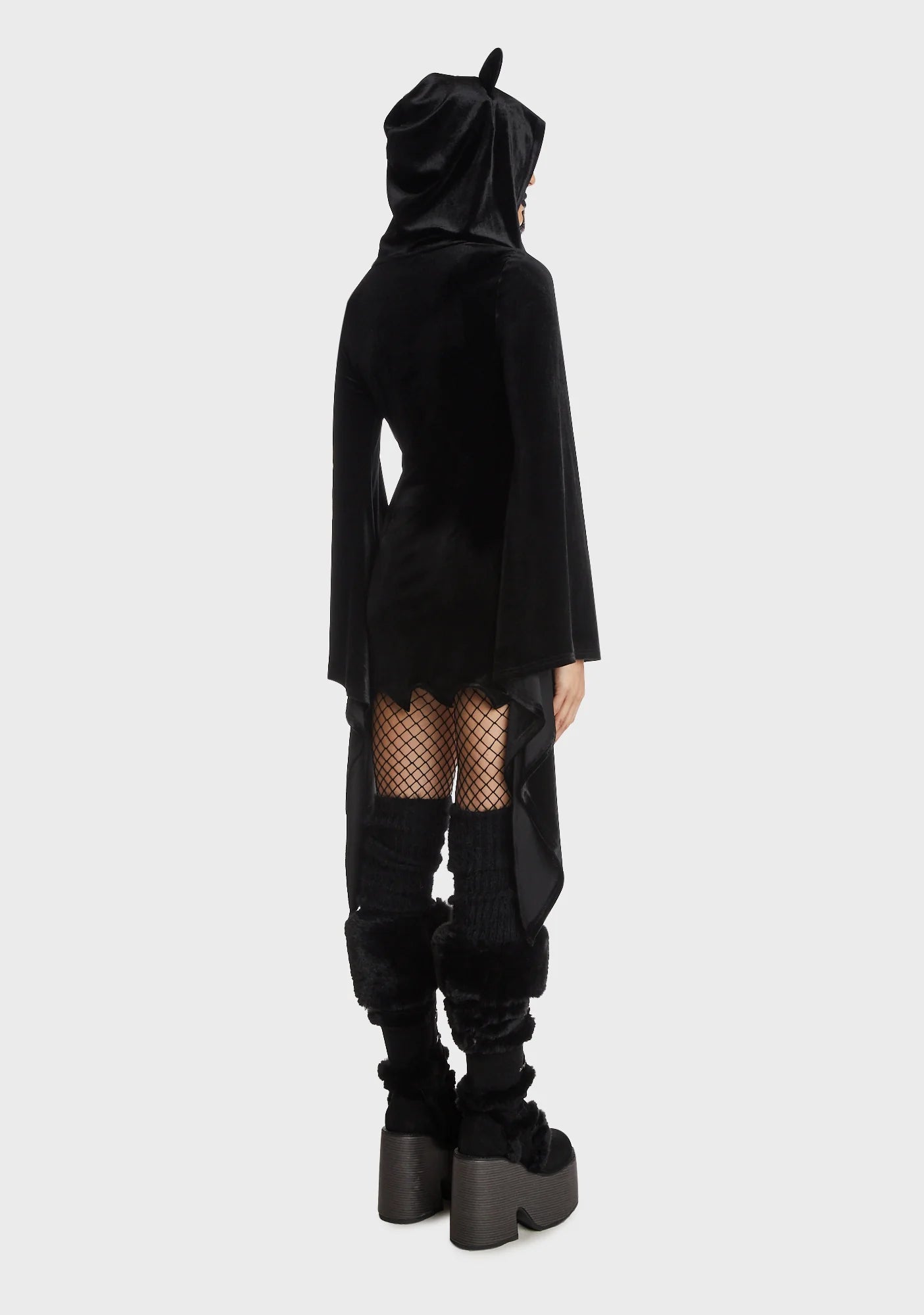 Cat Ear Bell Sleeves Hooded Zip Dress