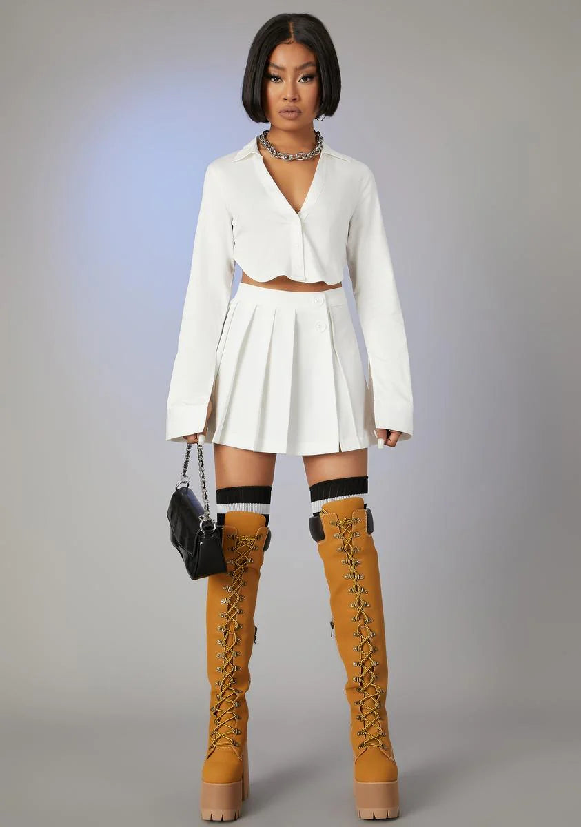 Catching International Flights Pleated Skirt