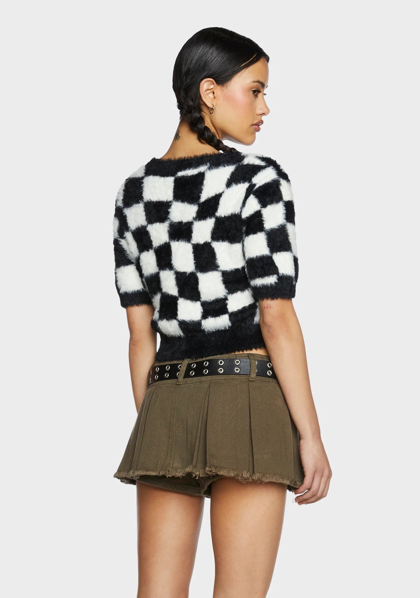 Checkered Knit Crop Top