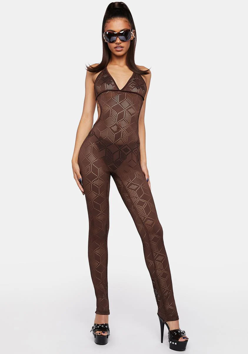 Chocolate Aim To Tease Knit Jumpsuit