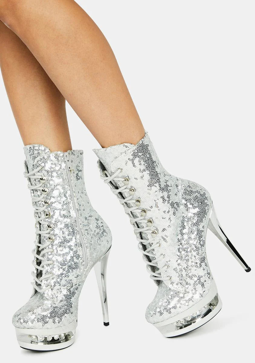 Chrome Check Me Out Platform Heels
