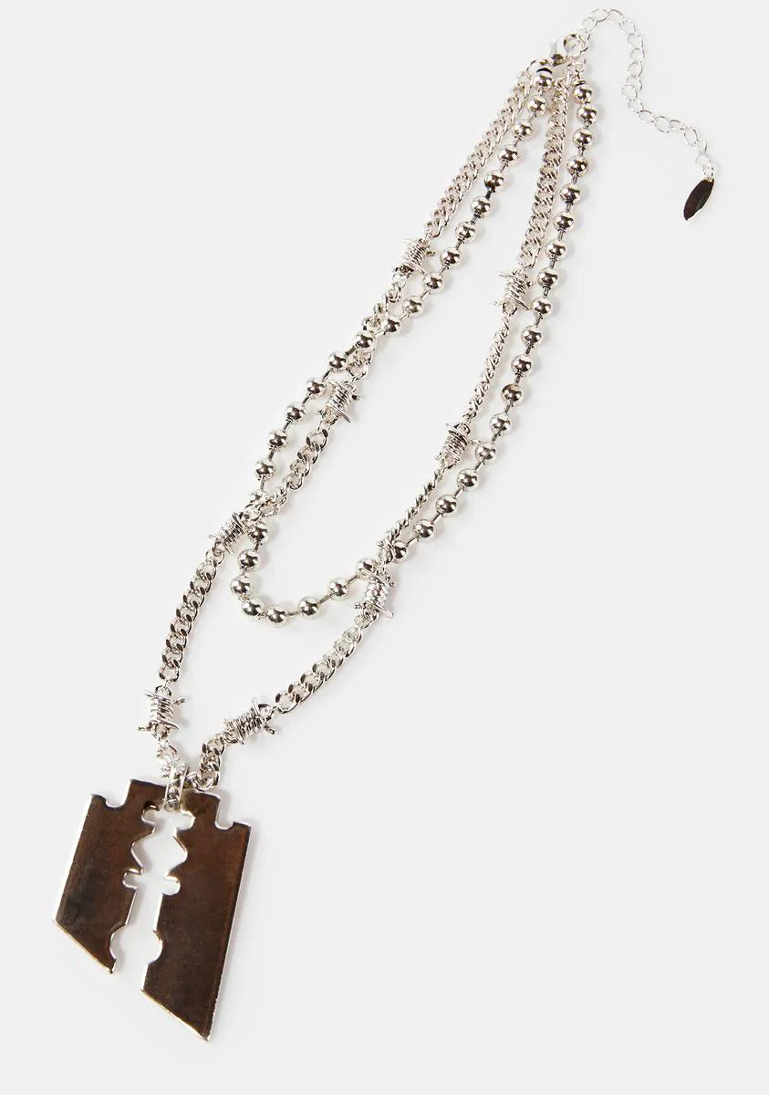 Compression Razor Blade Layered Necklace