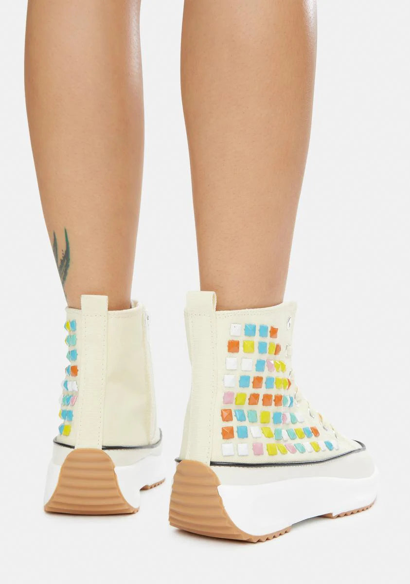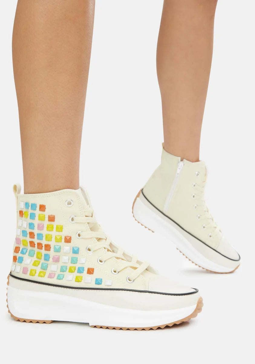 Cream Good Lookin' Studded Hi Top Sneakers