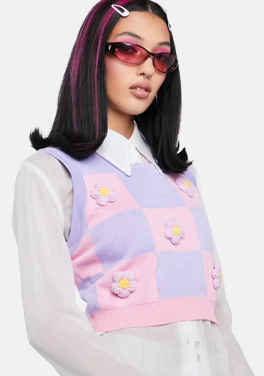 Crochet Flower Crop Knit Vest