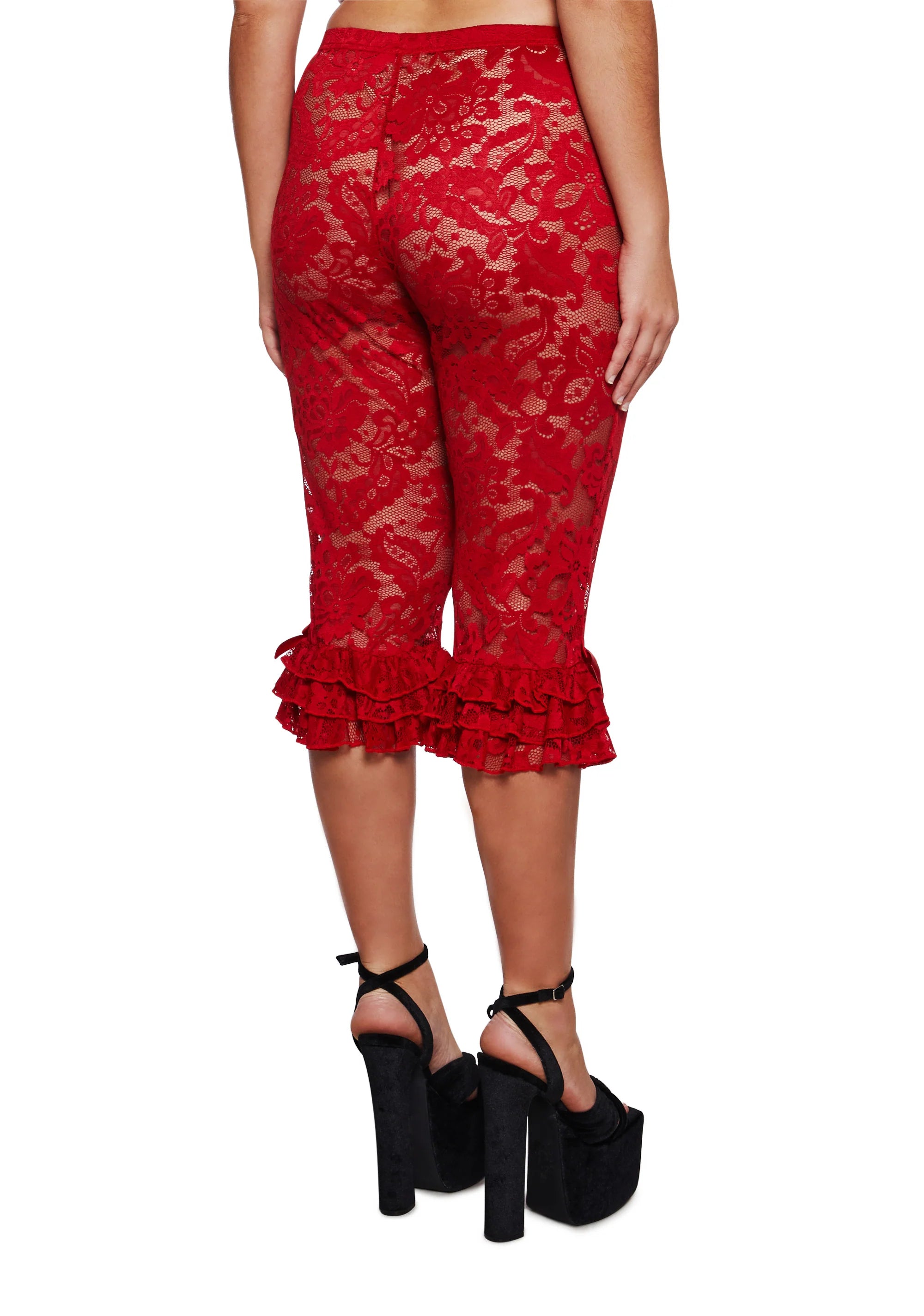 Daring Love Lace Capri Pants - Red
