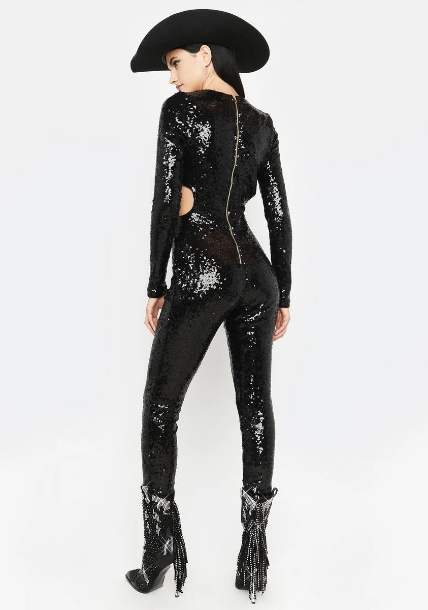 Dark Glimmered Visions Sequin Jumpsuit
