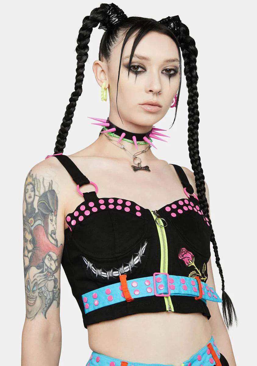 Dark Nails For Breakfast Embroidered Corset Top