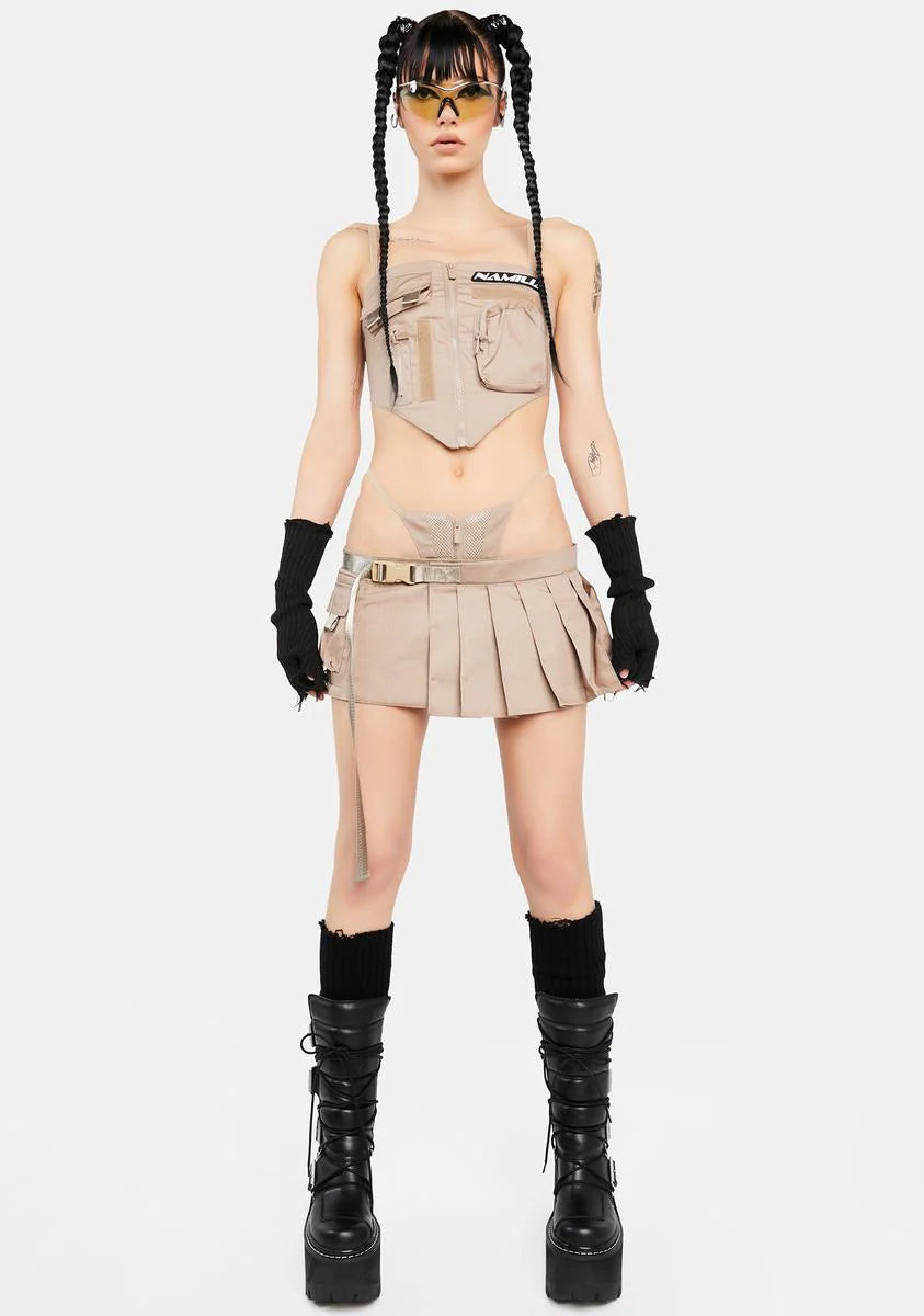 Desert Pleated Mini Skirt With Detachable Thong