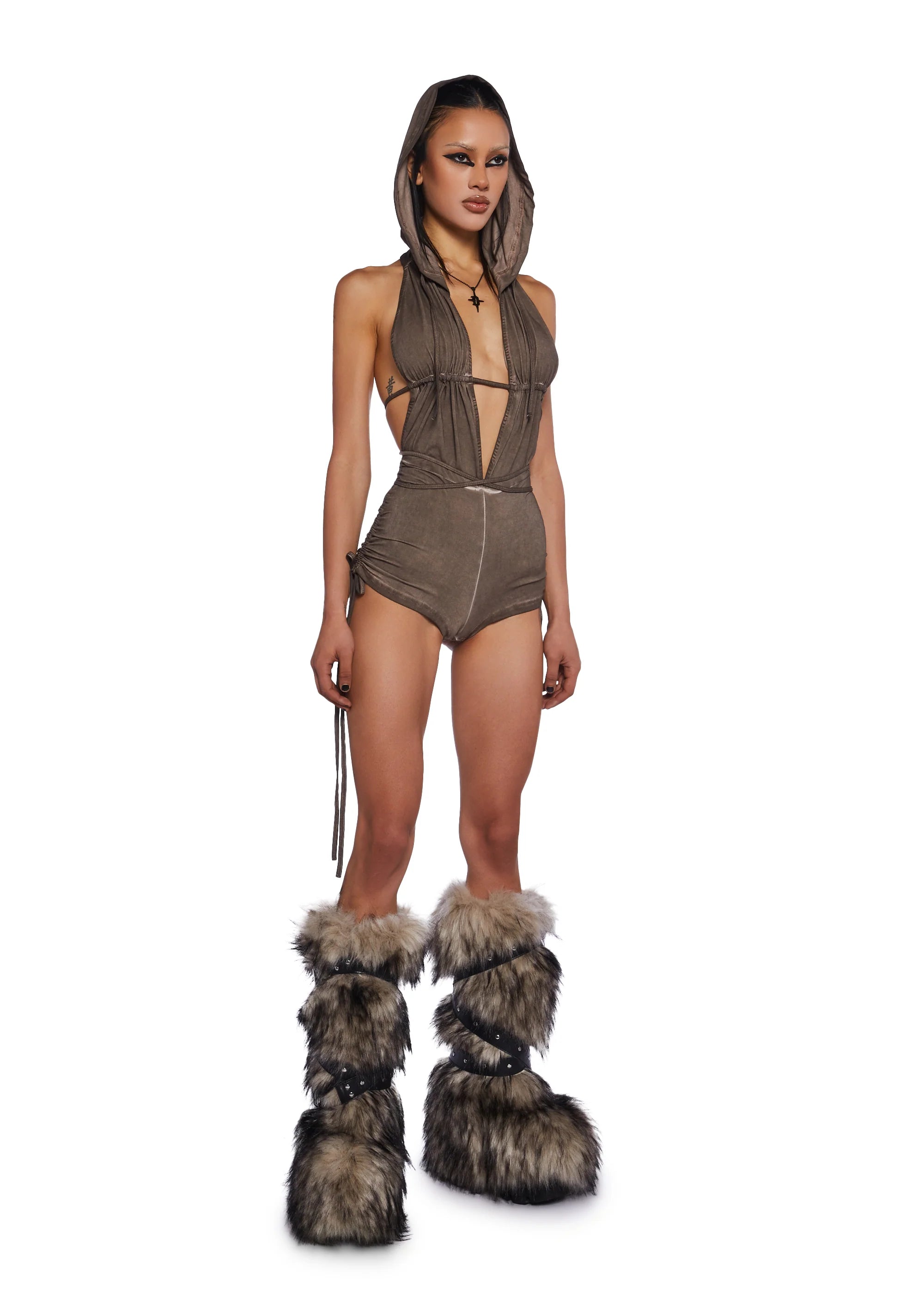 Downbeat Hooded Romper - Brown