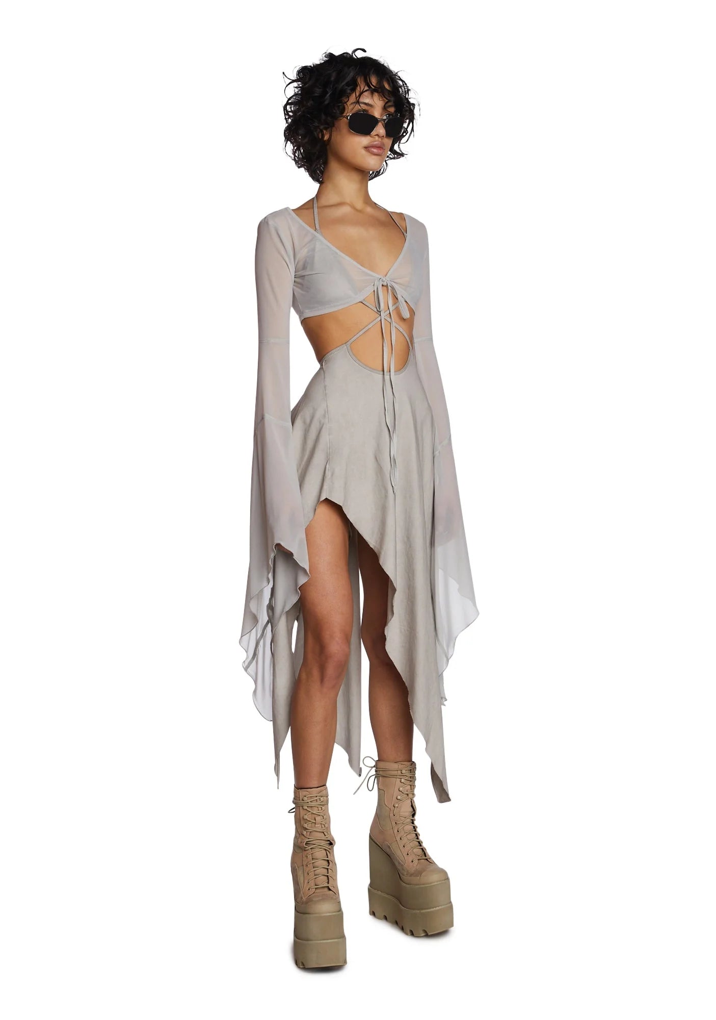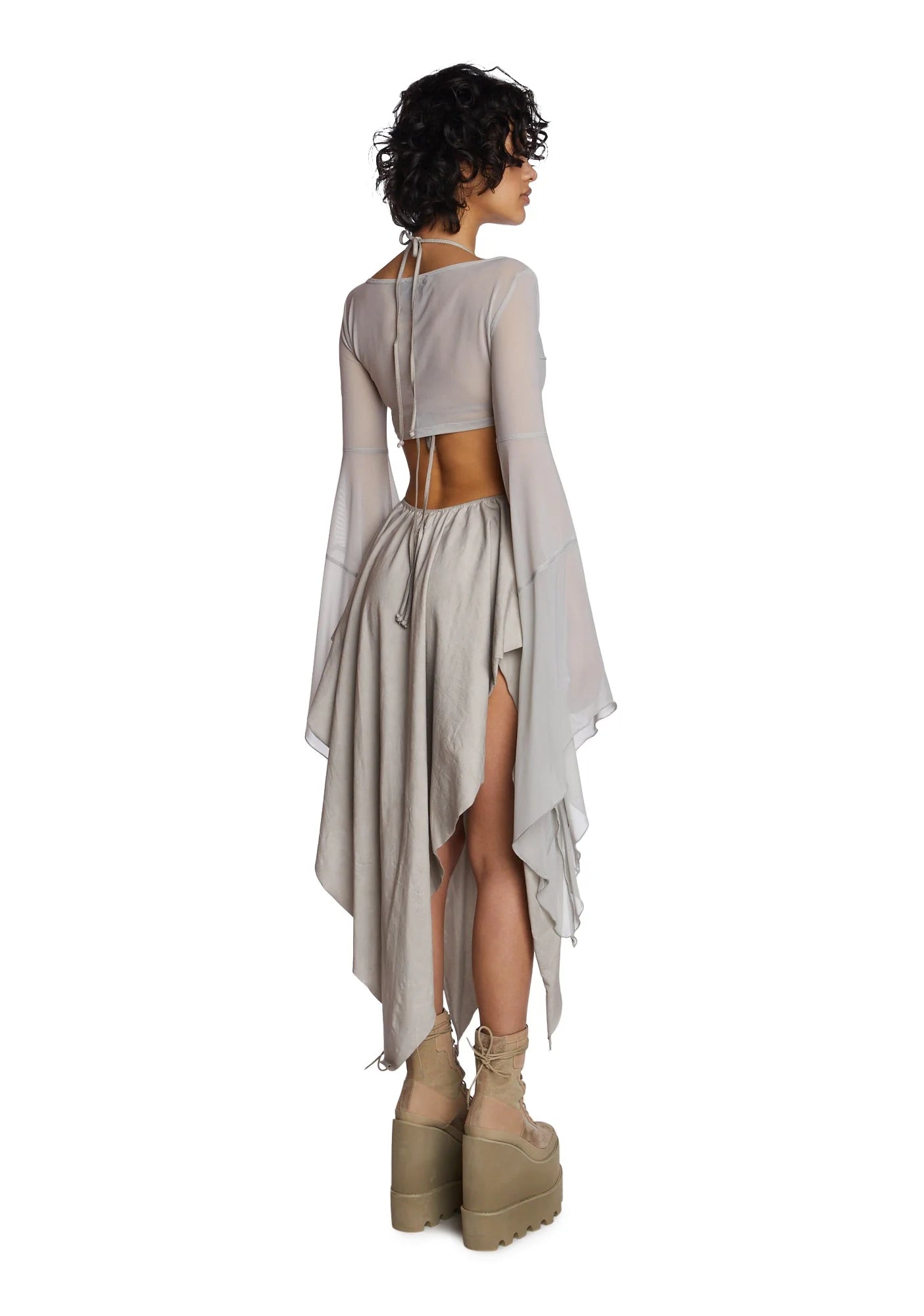 Echo Asymmetrical Mesh Wrap Dress - Off White