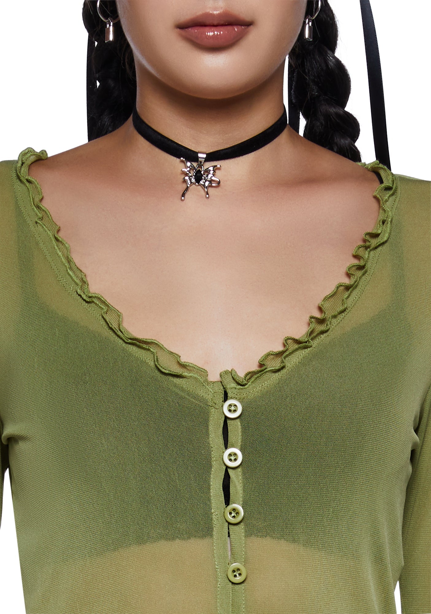 Everlong Romance Long Sleeve Top - Green