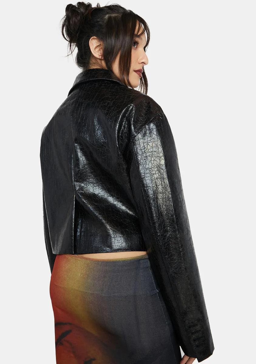 Faded Eco Leather Crop Jacket