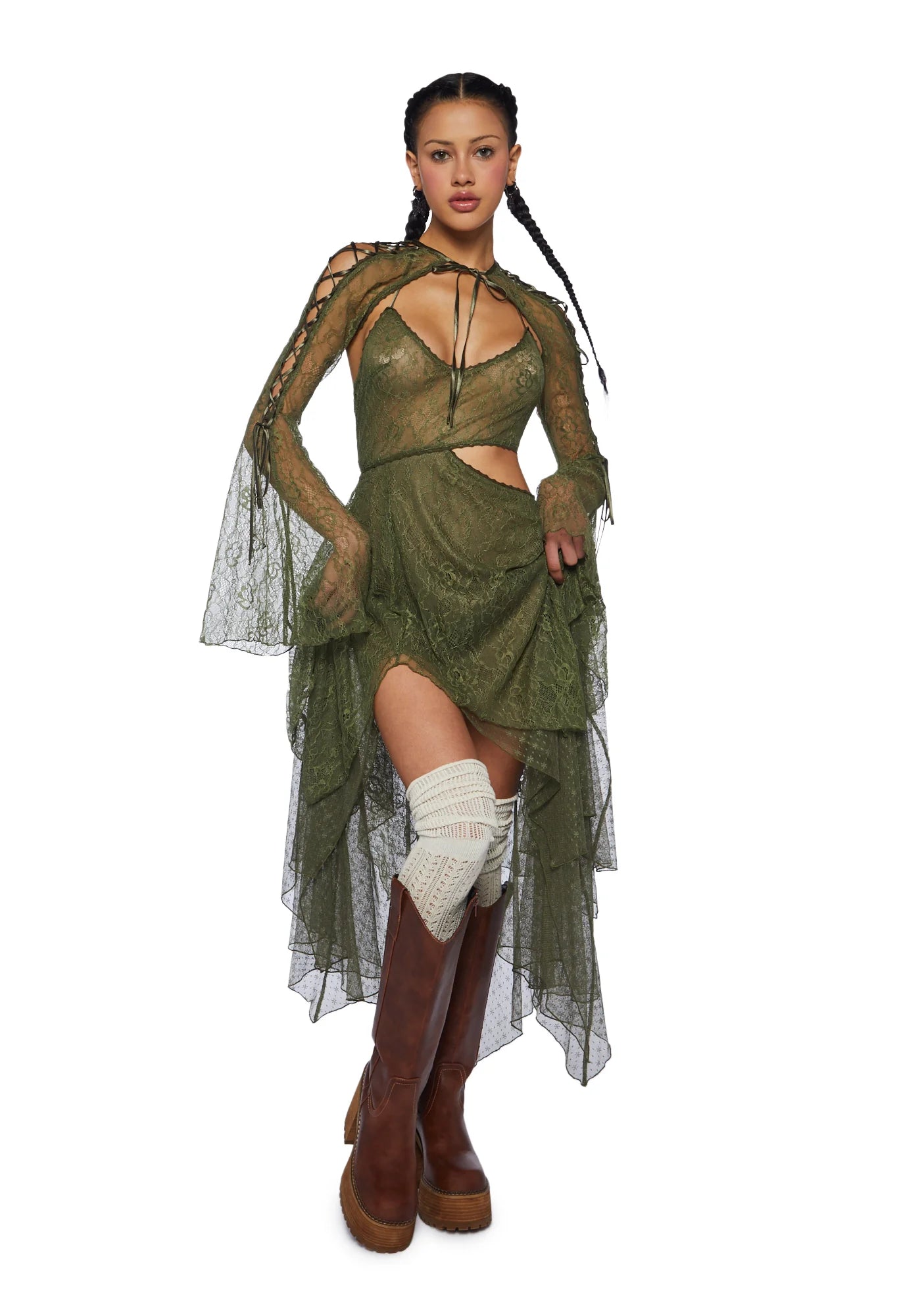 Fairydust Chronicles Lace Dress & Shrug Set - Olive