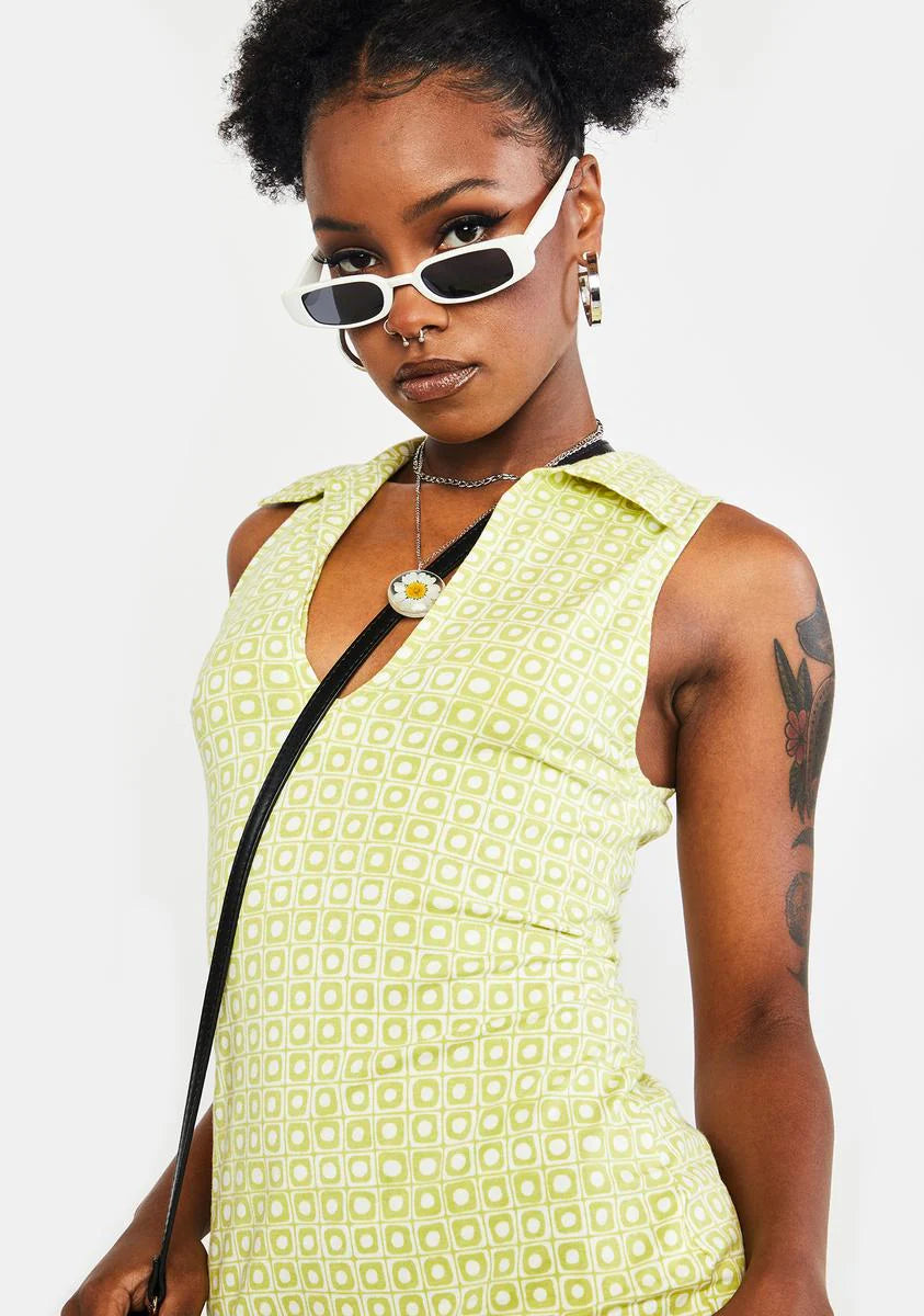 Green Geo Retro Jelita Mini Dress