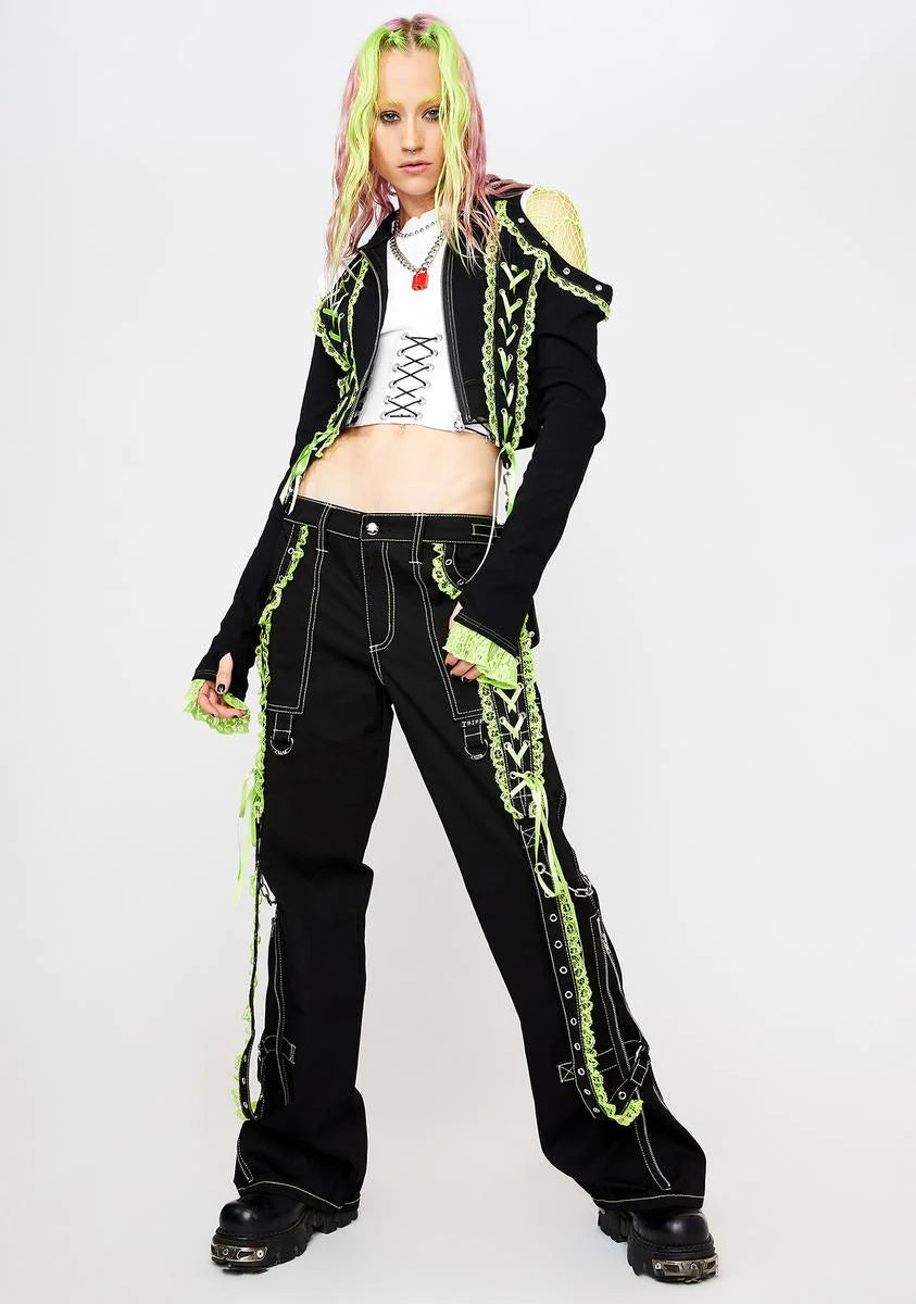 Green Lace Crop Hoodie