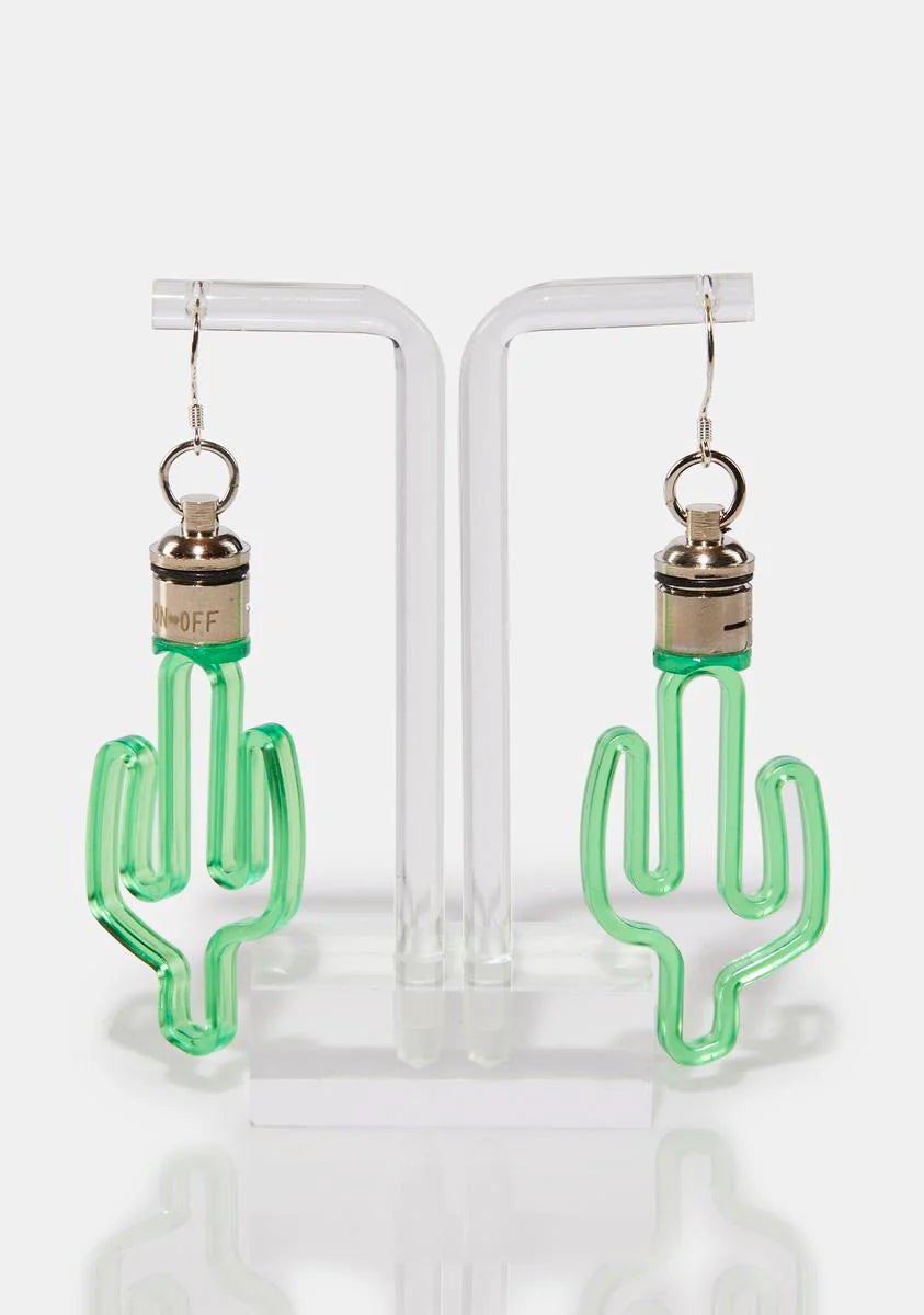 Green Light Up Cactus Earrings