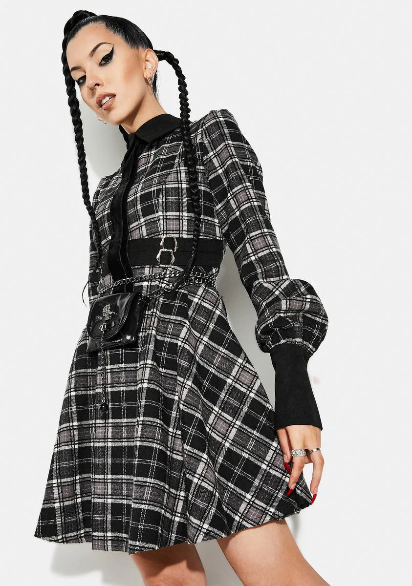 Grunge Puff Sleeve Plaid Dress