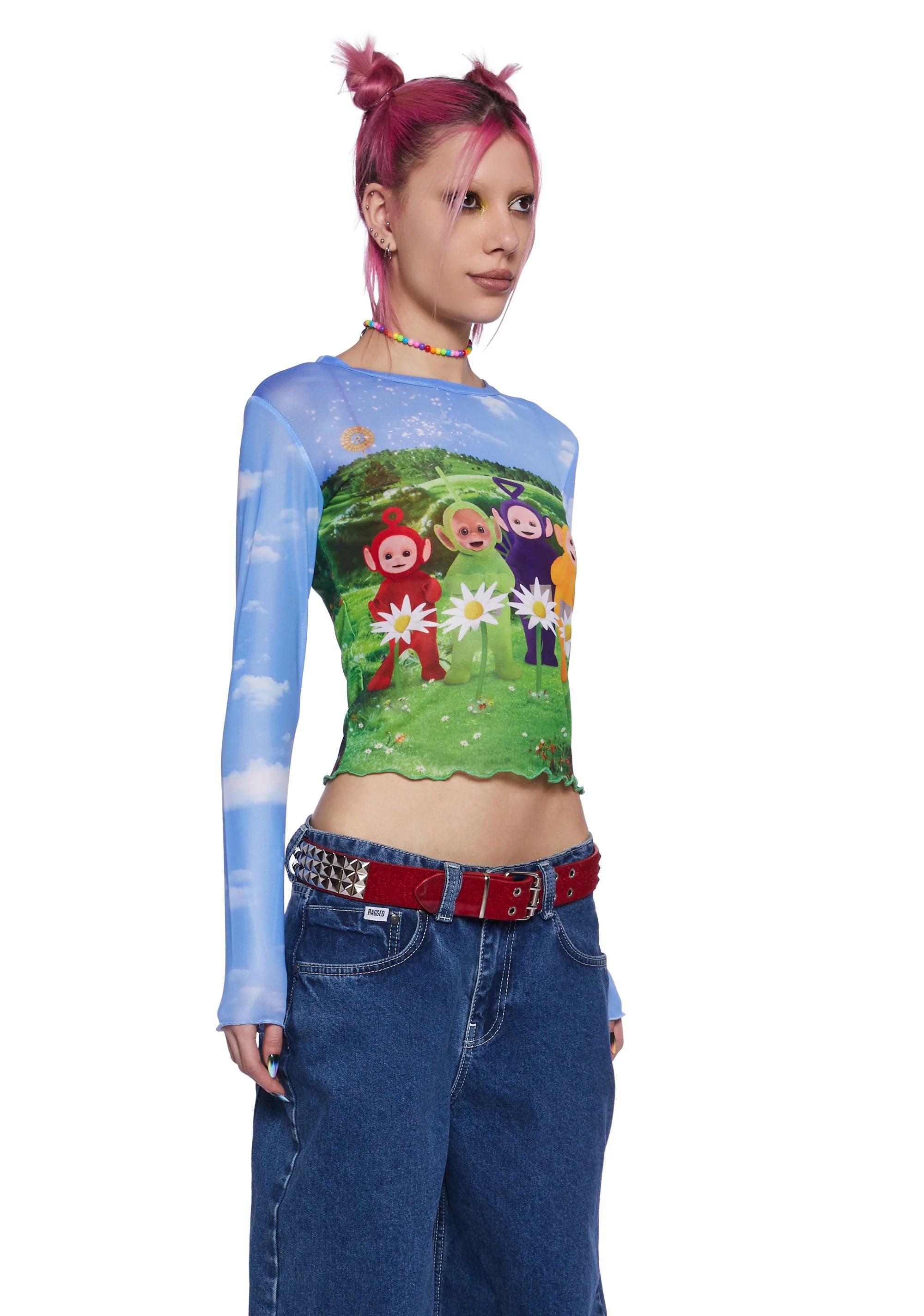 Happy Happy Graphic Mesh Top