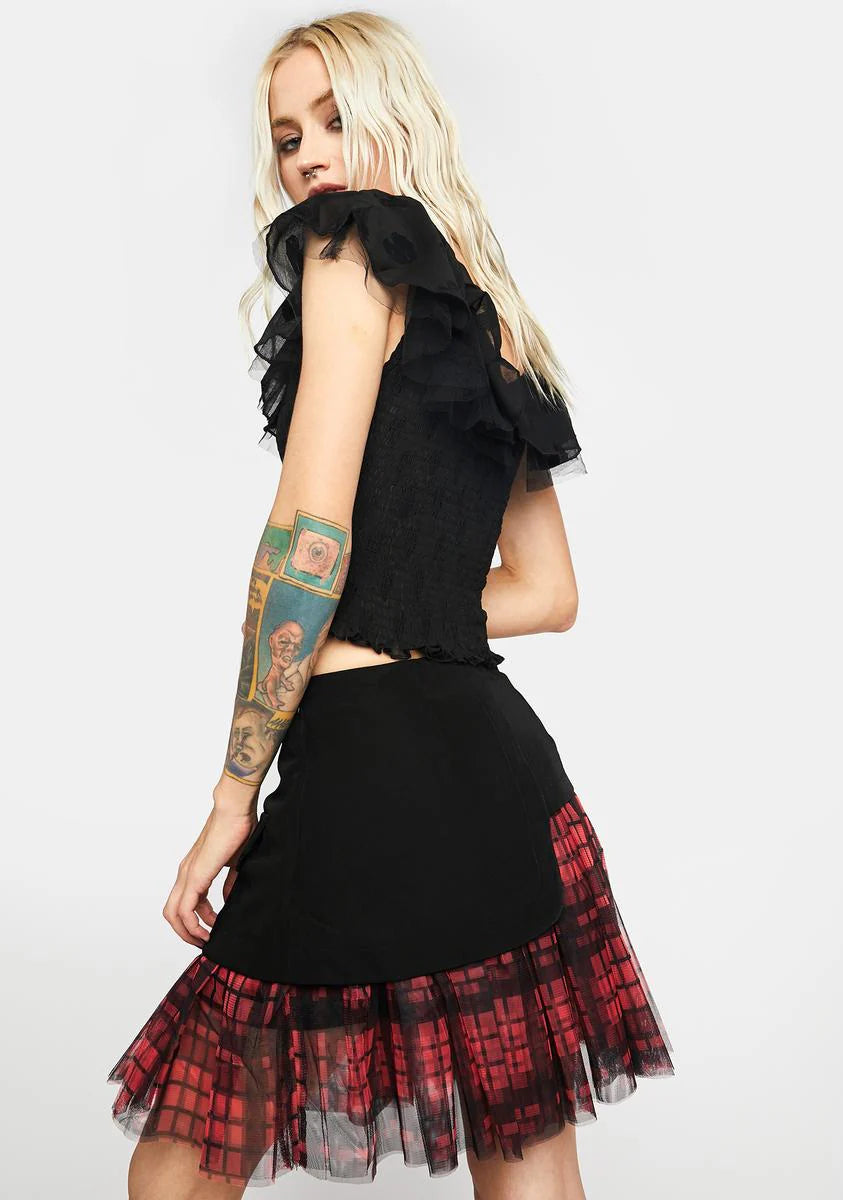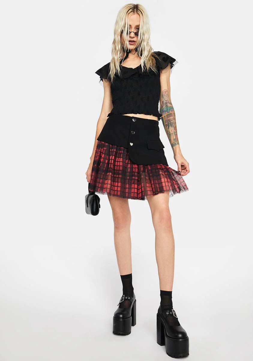 Hell Girl Series Mesh Stitched Grid Skort