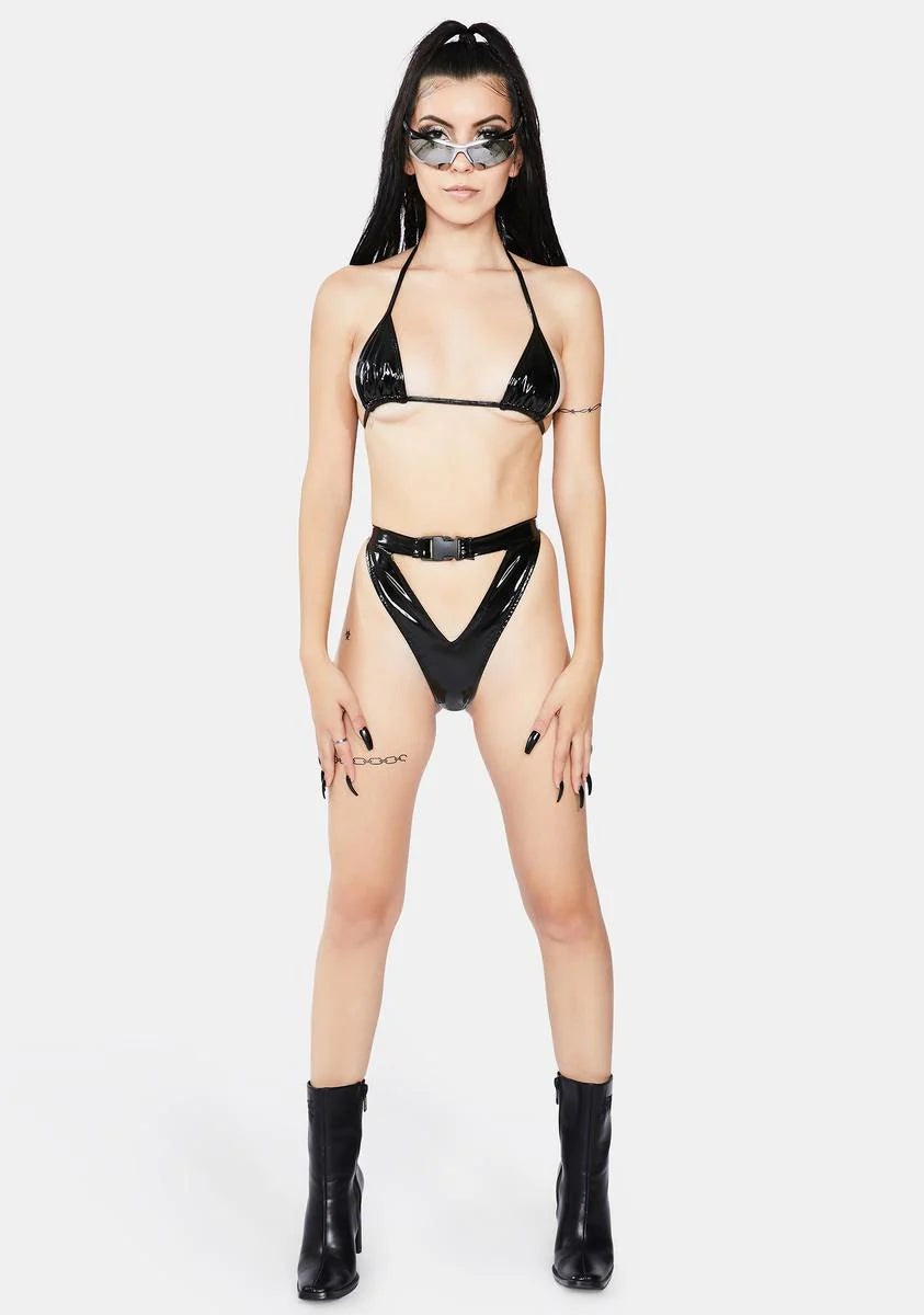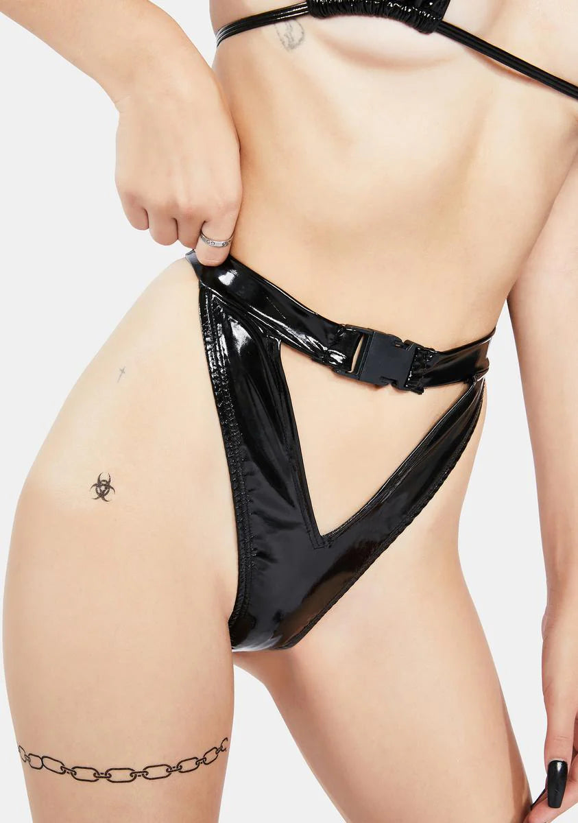 High Rise Buckle Latex Shorts