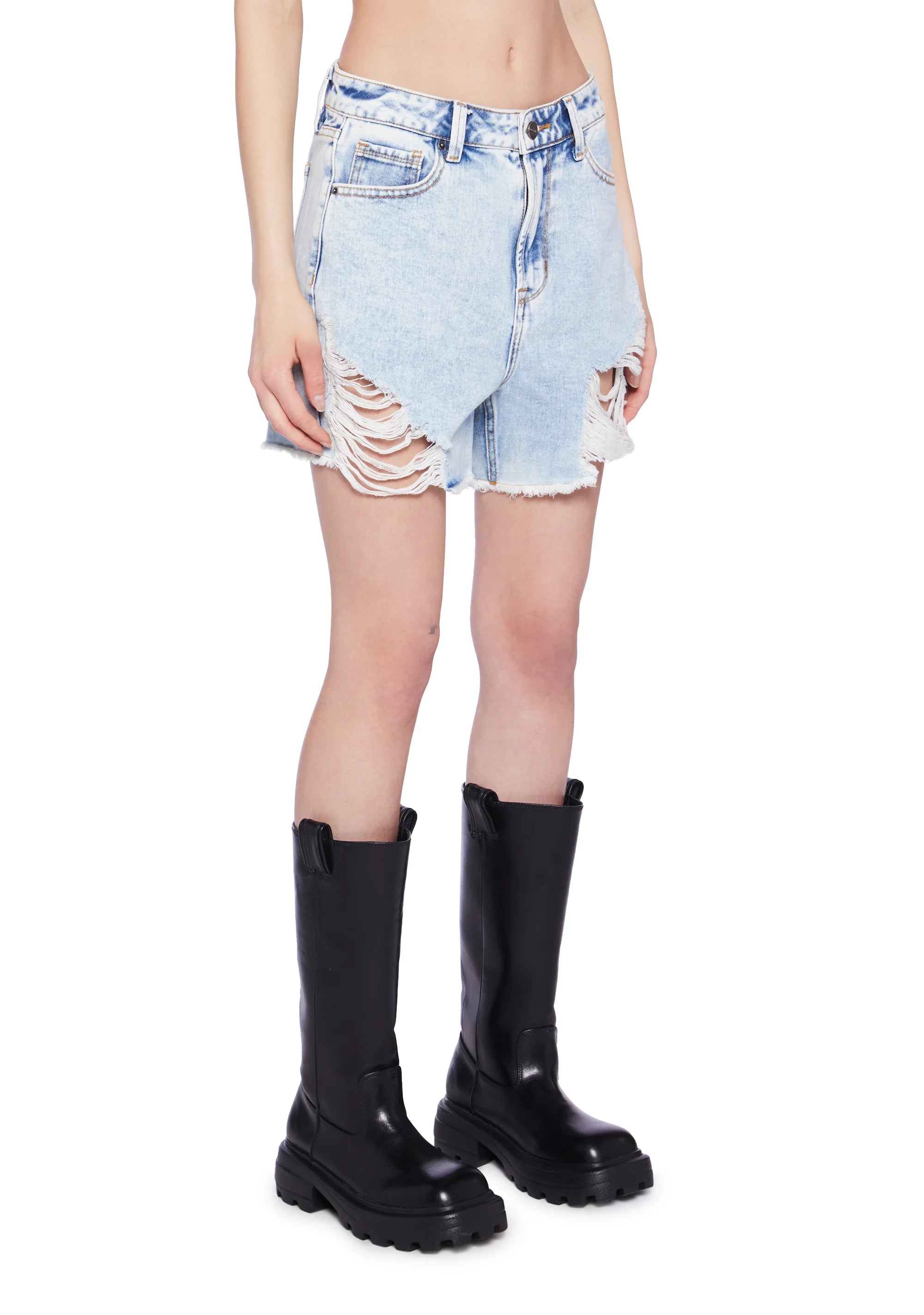 High Rise Distressed Denim Shorts - Light Blue