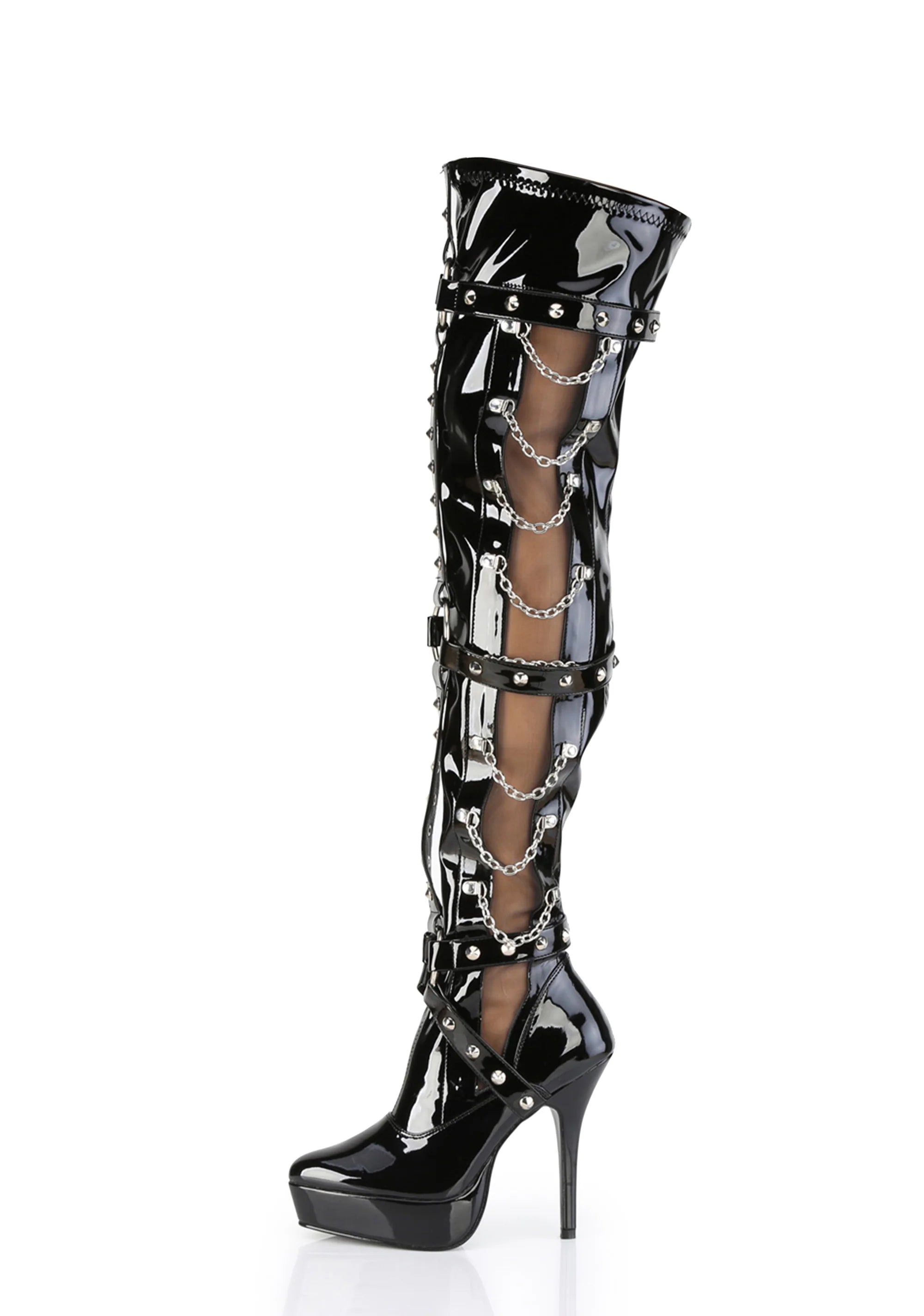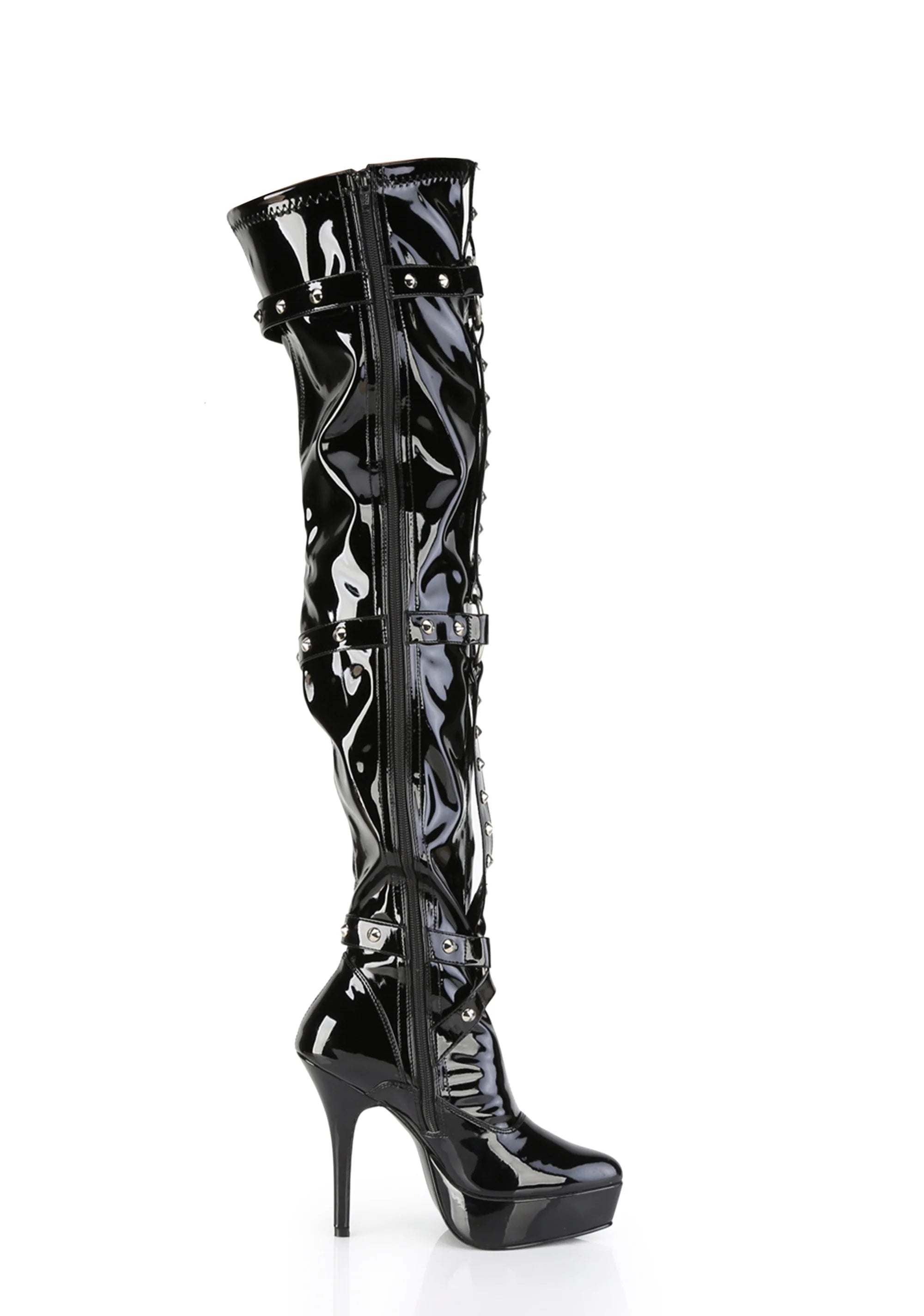 Indulge-3026 Platform Thigh High Boots-Black