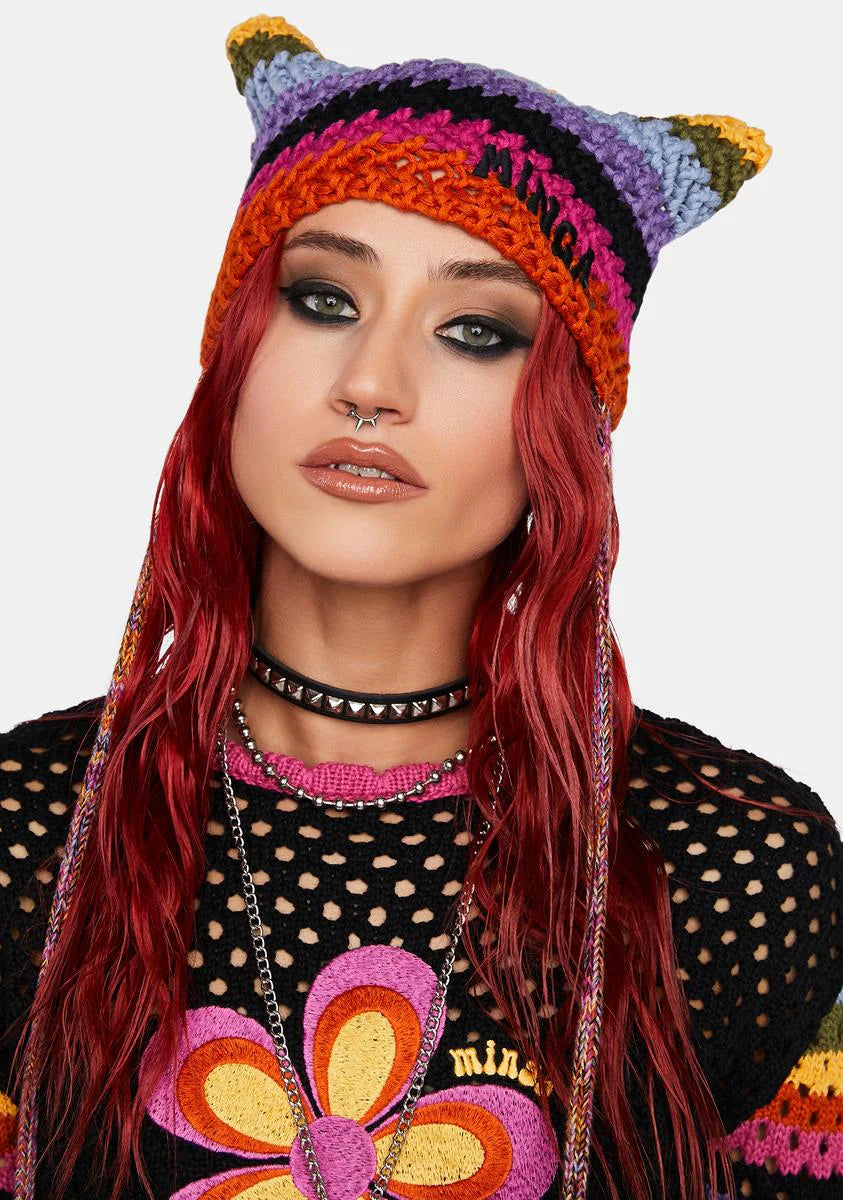Joy Rainbow Striped Knit Tie Hat