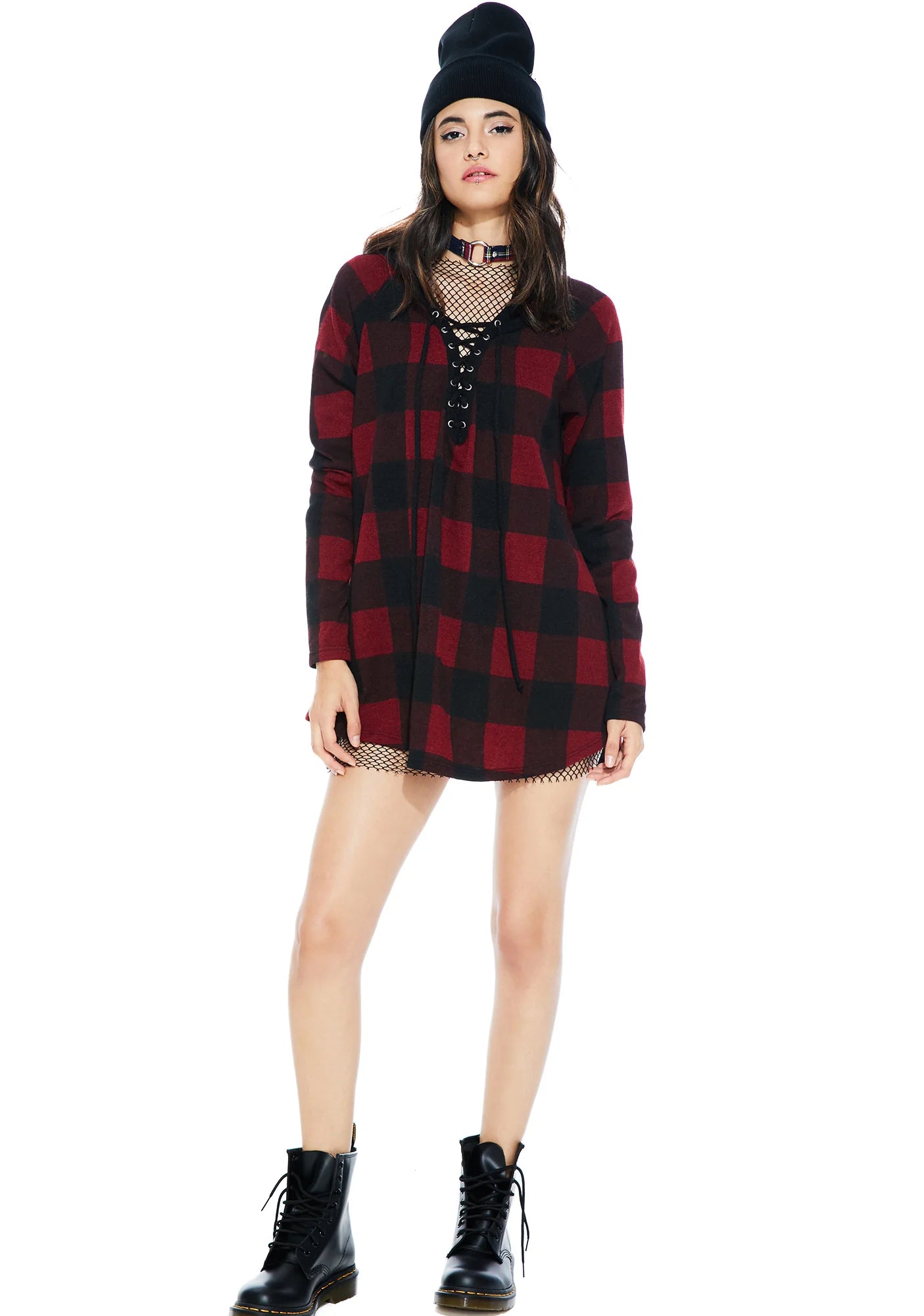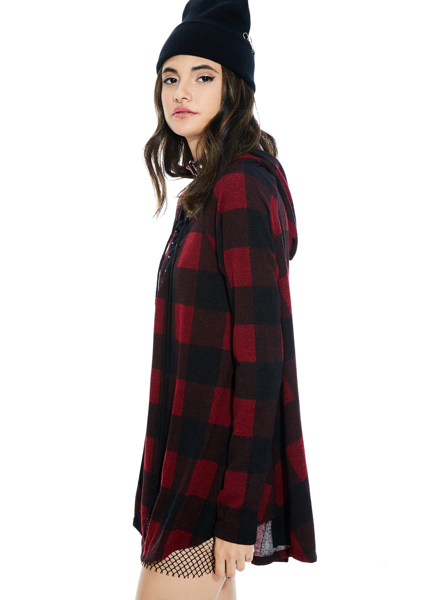 Kickback Plaid Lace-Up Hoodie