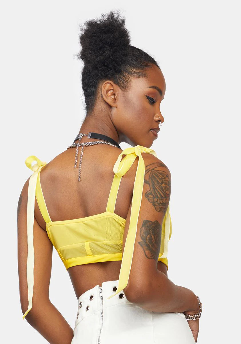 Lemon Tie Breaker Mesh Corset Top