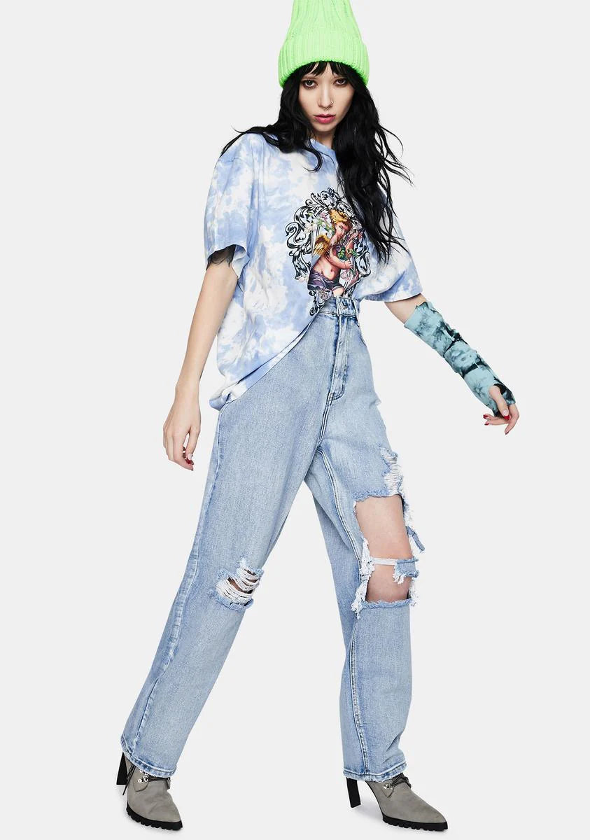 Light Wash Distressed High Waist Boyfriend Jeans