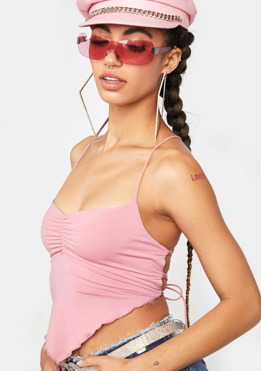Mauve Knot Again Lace-Up Crop Top